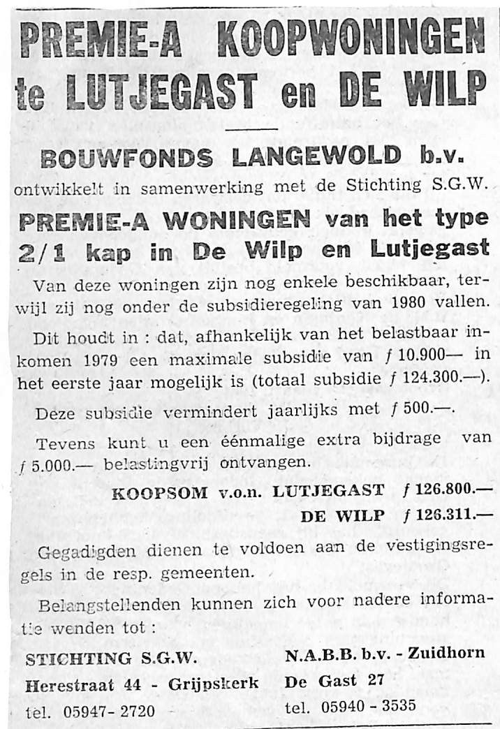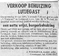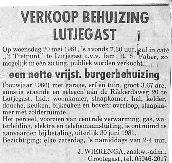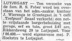 verkoop behuizing Lutjegast; R. S. Faber, J. Wierenga