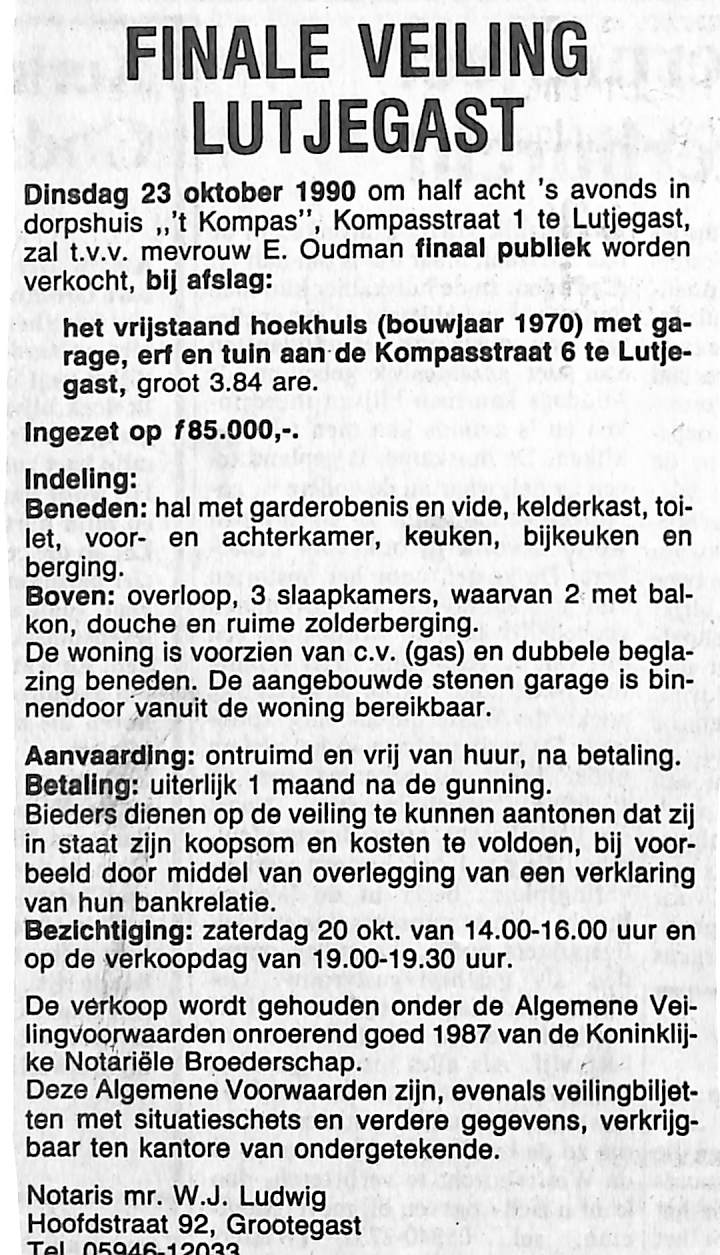 Verkoop Kompasstraat 6 t.v.v. E. Oudman door Notaris W. J. Ludwig.