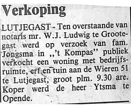 De Wieren 51, van fam Jongsma koper werd dhr, Ytsma