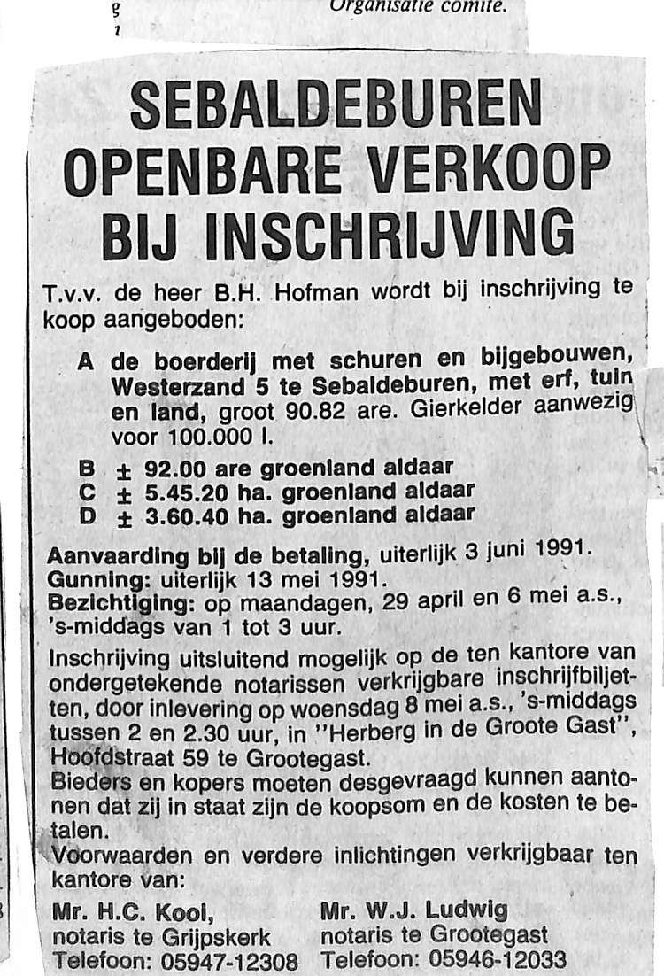 publieke verkoop boerderij Westerzand 5 B. H. Hofman