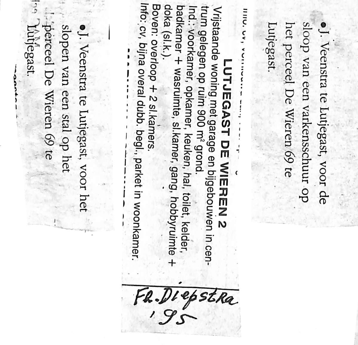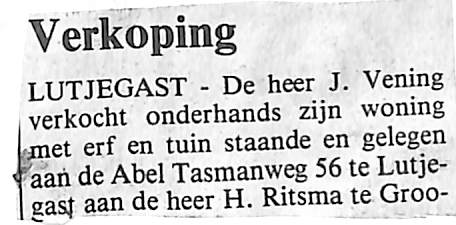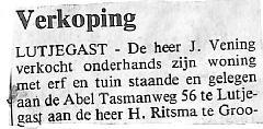J, Vening verkocht zijn huis. AT 56 aan H. Ritsma