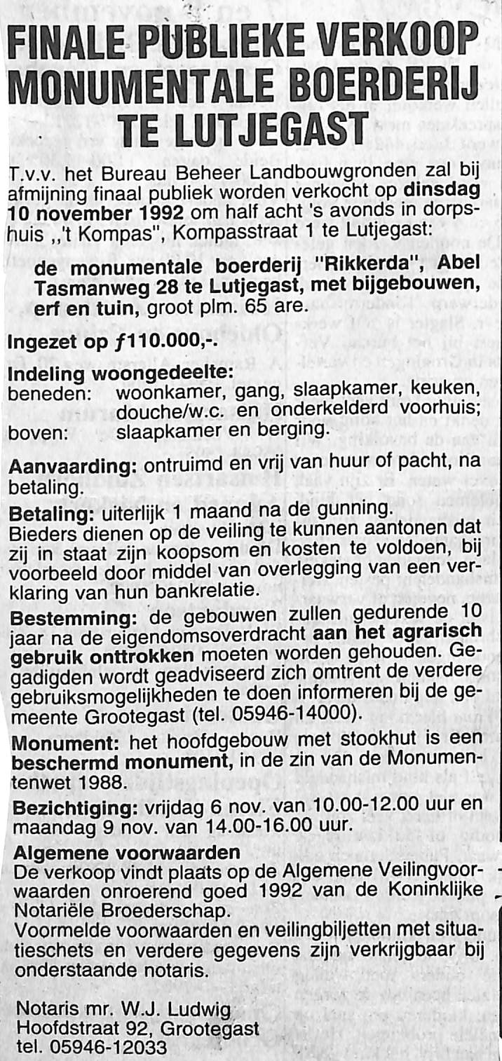 publieke verkoop De Wieren 51 fam. Jongsma, W. J. Ludwig
