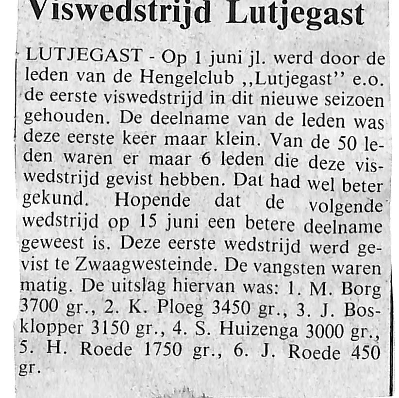uitslag 7de klaverjascompetitiewedstrijd; J. Huisma, F. Jager, R. v/d Velde, J. Slagter, D. v/d Velde, A. Bruining, R/ v/d Velde, L. v/d Velde, A. Been, D. Baalbergen, G. v/d Velde, F. Hommes, J. Steursma, B. v/d Hengel, H. Oldenburger, J. Berghuis, A. Pop, W. Jongsma, A.v/d Velde, L. Roede, J. V/d Velde, H. v/d Velde, T. Pop, T. Vogelzang
