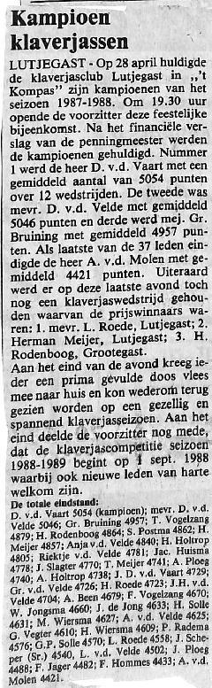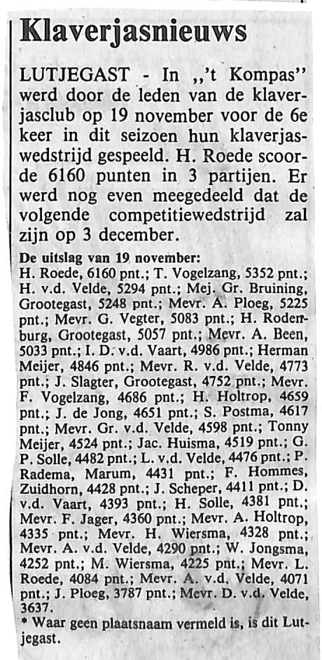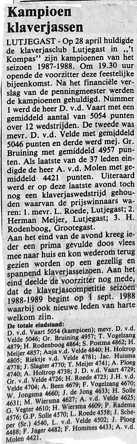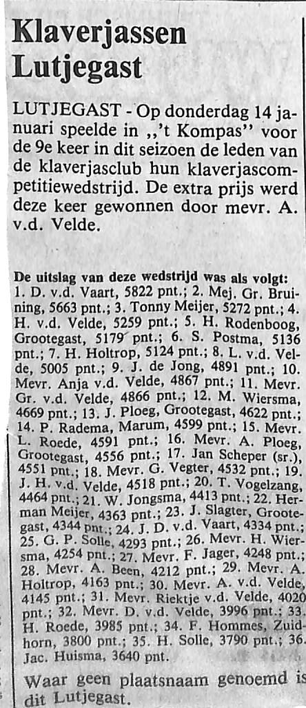 v. Vaart, Bruining, Meijer, v.d. Velde, Rodenboog, Postma, Holtrop, de Jong, Wiersma, Ploeg, Roede, Scheper, Vegter, Vogelzang, Jongsma, Solle, Jager, Been, Hommes, Huisma
