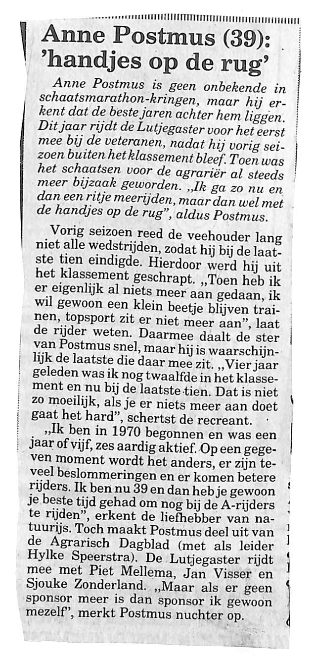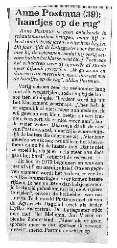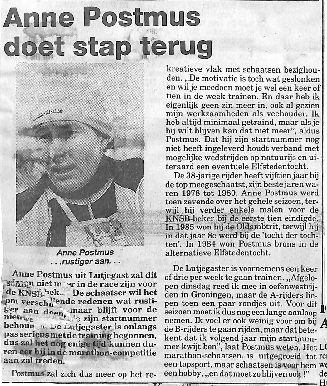 Anne Postmus doet een stapje terug. Meer bezighoud met recreatief schaatsen, na 15 jaar wedstrijdschaatsen.