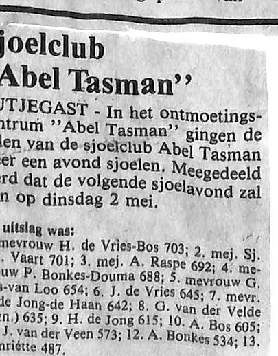 Spannend tournooi, Uiteindelijk won Abel Tasmanweg West