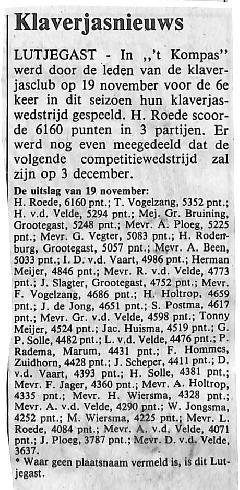 Roede, Vogelzang, v.d. Velde, Bruining, Ploeg, Vegter, Rodenburg, Been, v.d. Vaart, Meier, Slagter, Holtrop, de Jong, Postma, Huisma, Solle, Radema, Hommes, Scheper, Jongsma, Ploeg