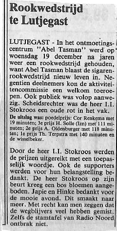 uitslag Rookwedstrijd; I. I. Stokroos, C. Renkema, H. Solle, A. Oldenburger, Th Terpstra