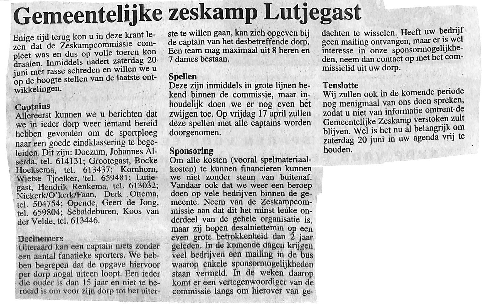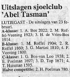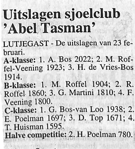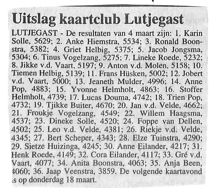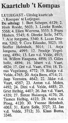 Uitslag: Eilander, Vogelzang, Helbig, Jongsma, v.d. Vaart, Wiersma, Hüsken, Boonstra, Tuinstra, Solle, Roede, Scheper, Veenstra, Helmholt, Been, Buiter, Douma, Haagsma, Stokroos,