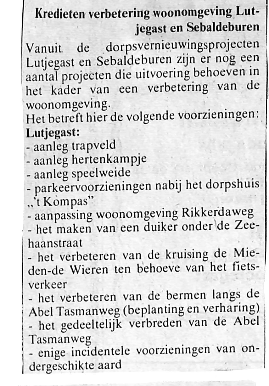 lijstje met wat het dorp nog graag ziet verbeteren of aanleggen