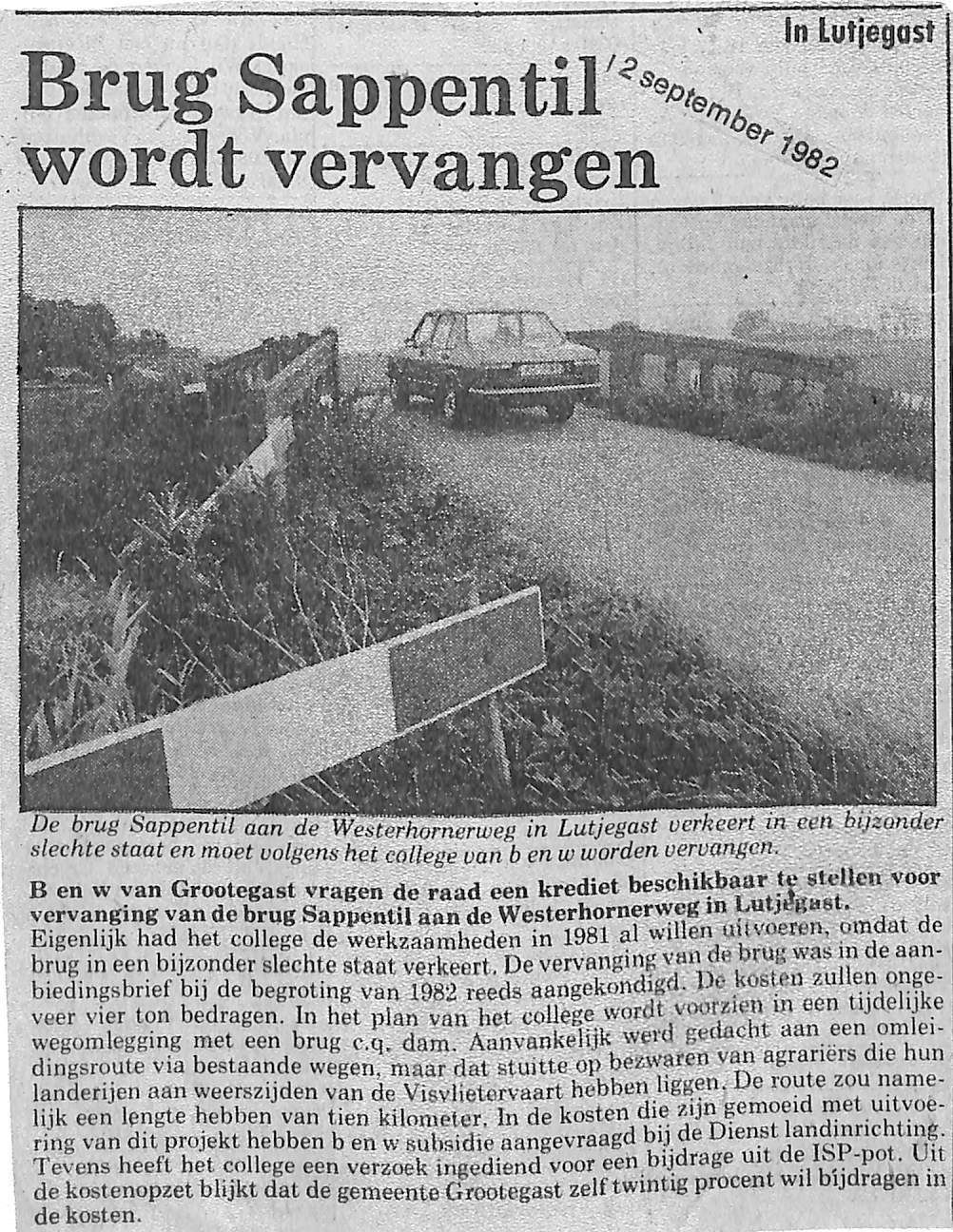 Brug Slappentil in de Westerhornerweg wordt vervangen.