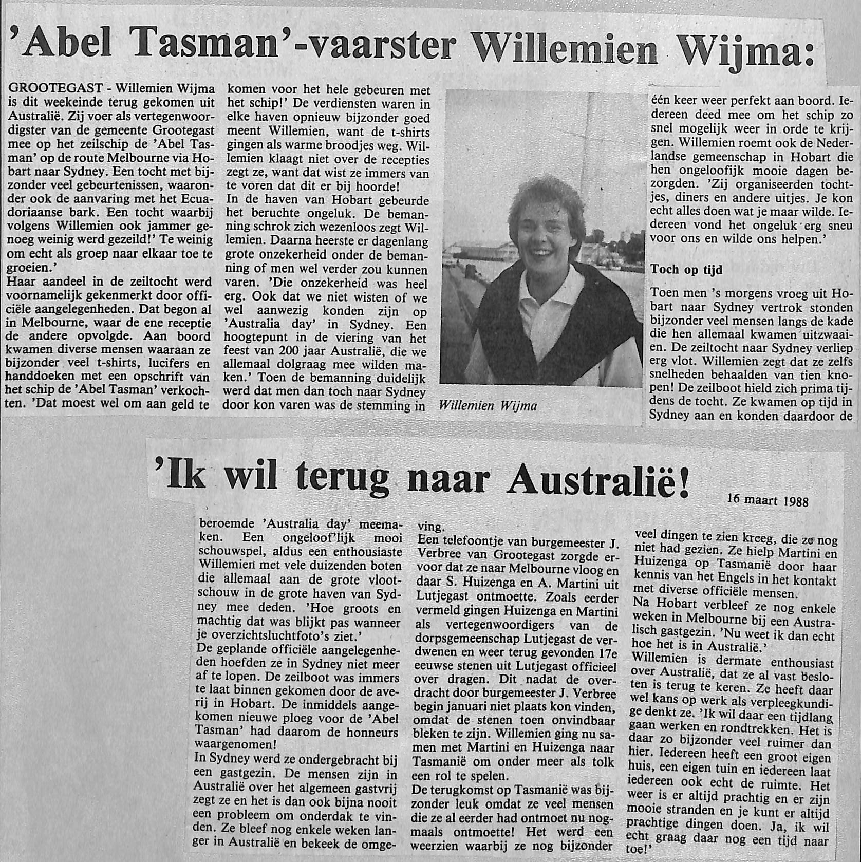 Willemien Wijma is een stuk meegevaren en wil weer terug naar Australië.