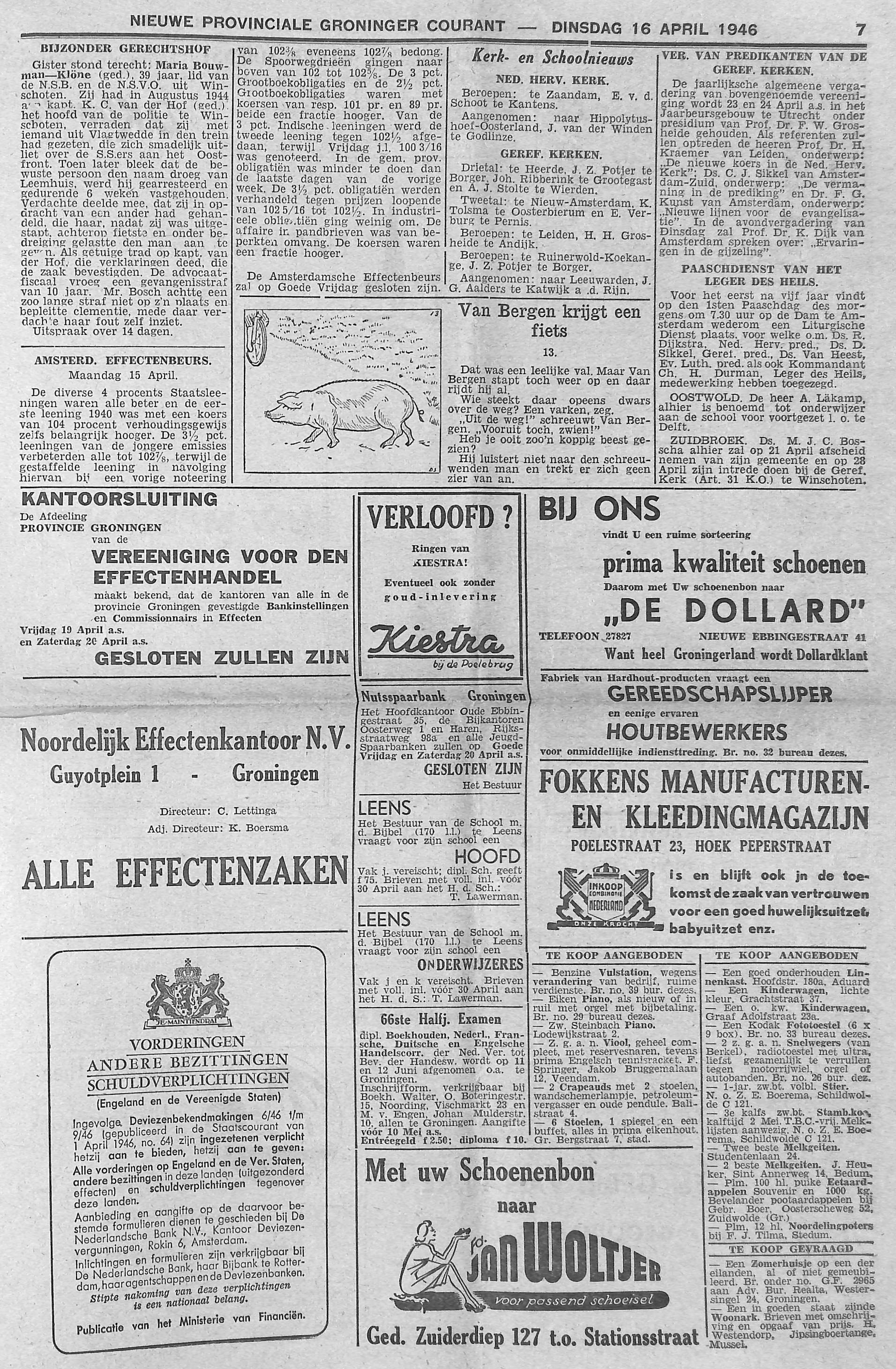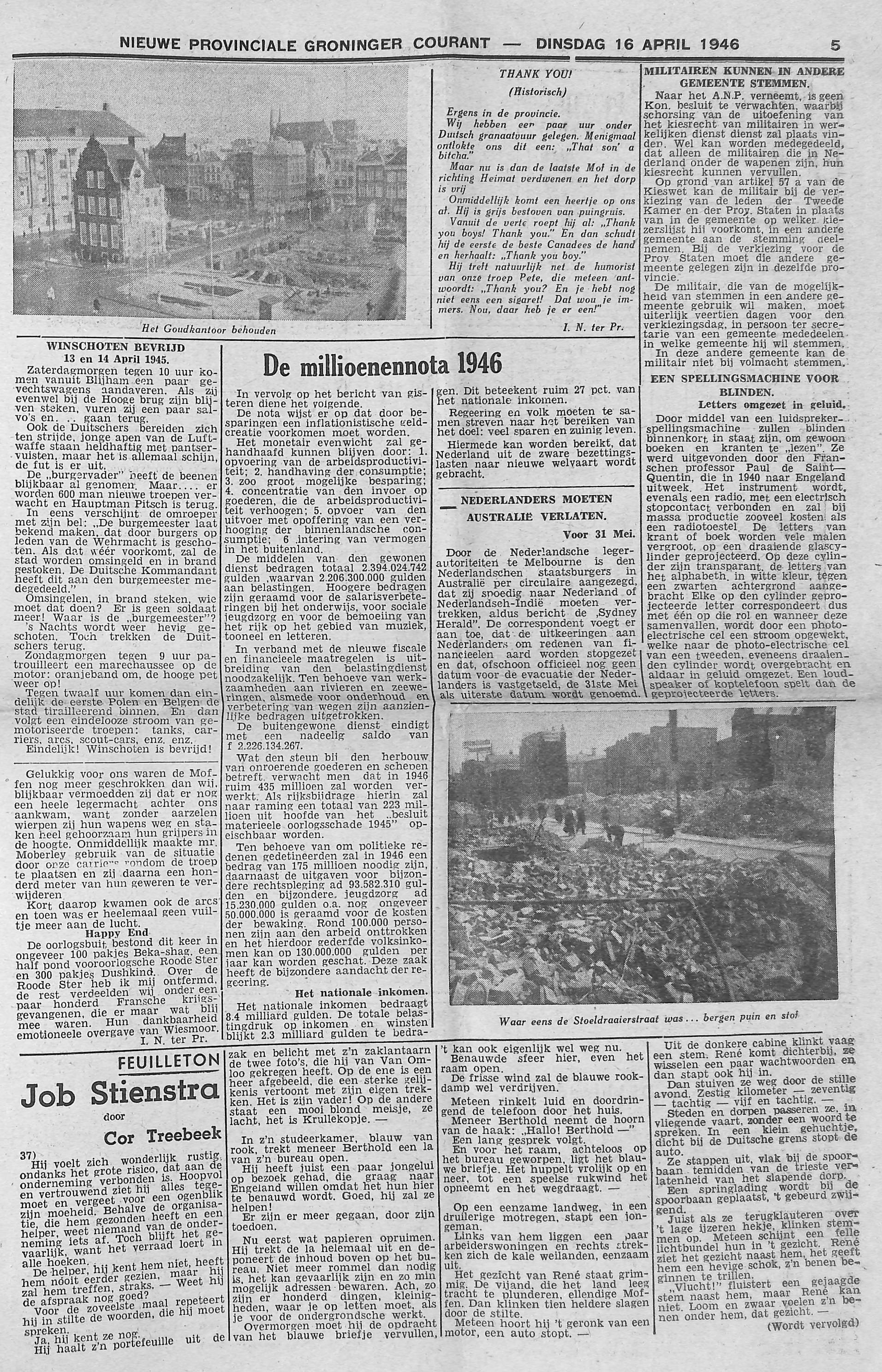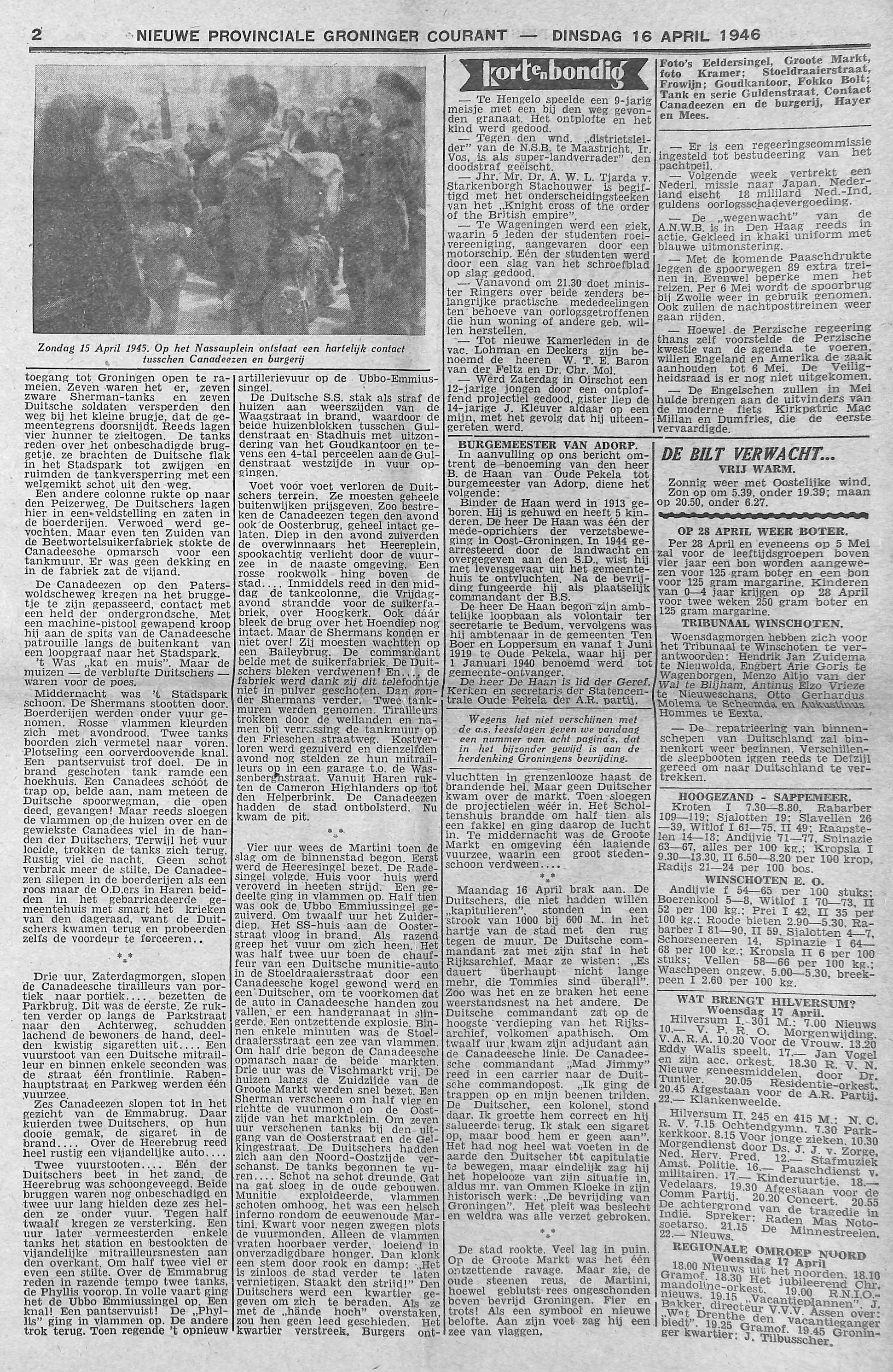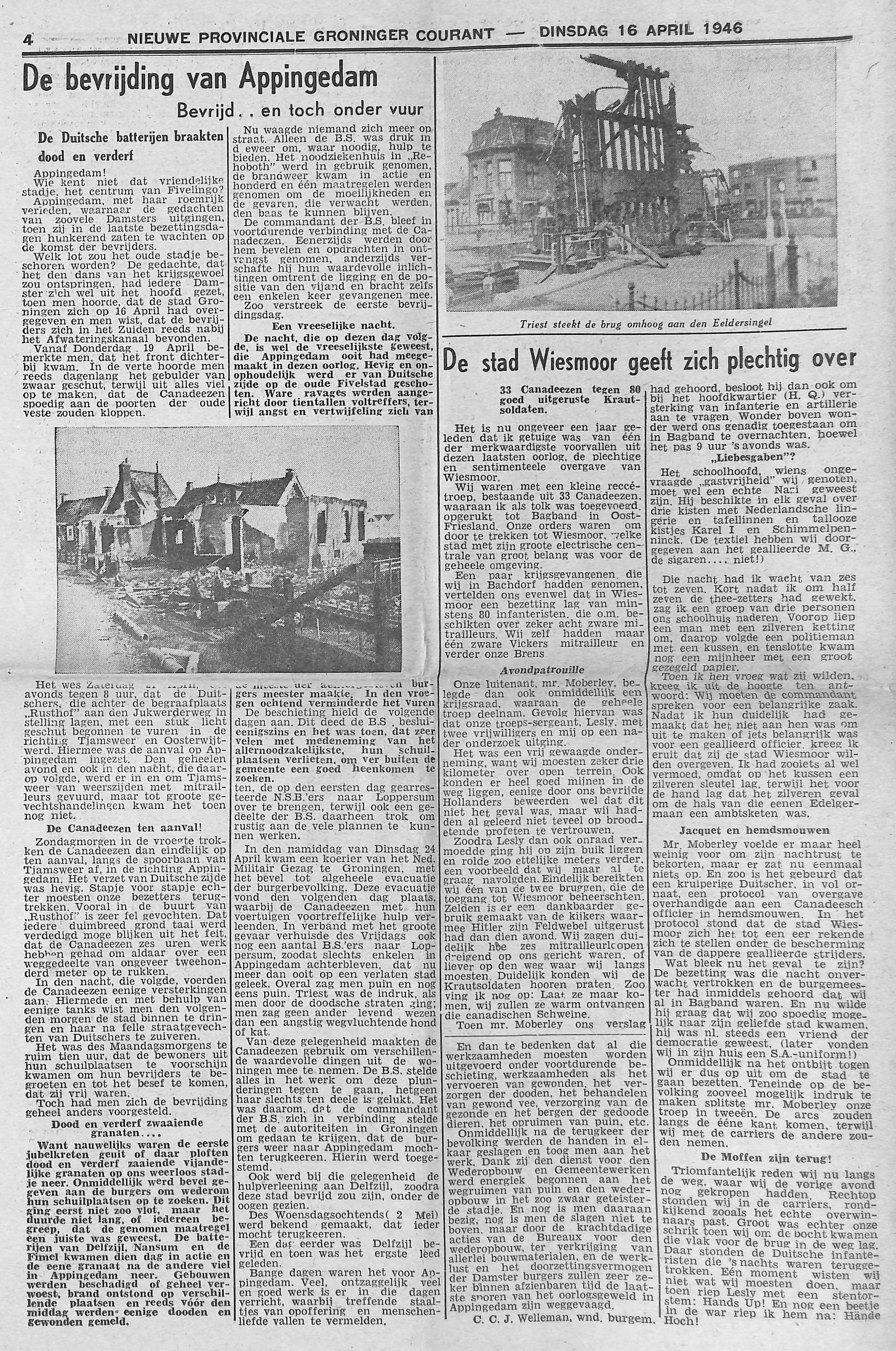 bevrijdingsnummer, met verslag van de laatste dagen van de strijd in 1945 en de acties daarna, over ontwapenen van duitse soldaten, over de canadezen, over de bevrijding van diverse dorpen en steden, millioenennota van 1946.