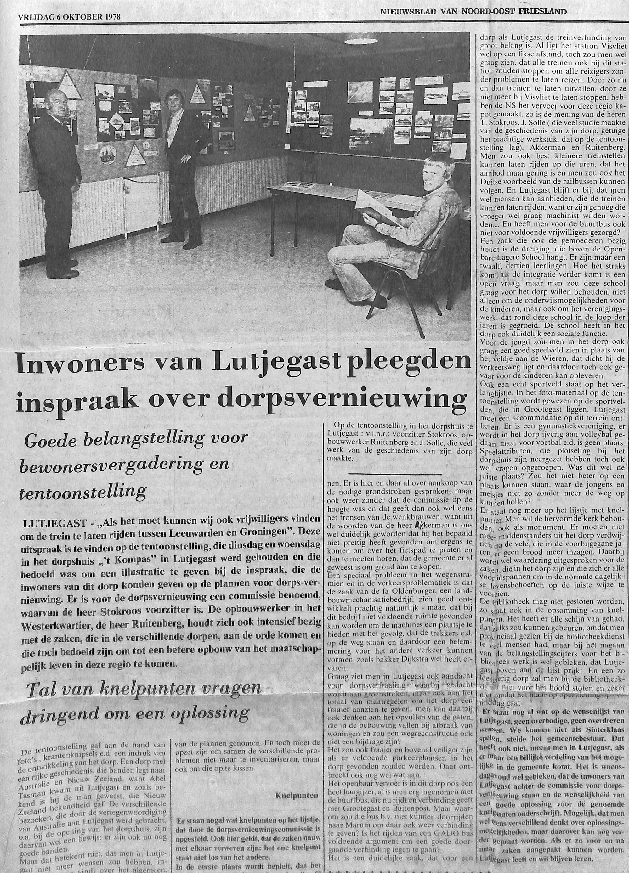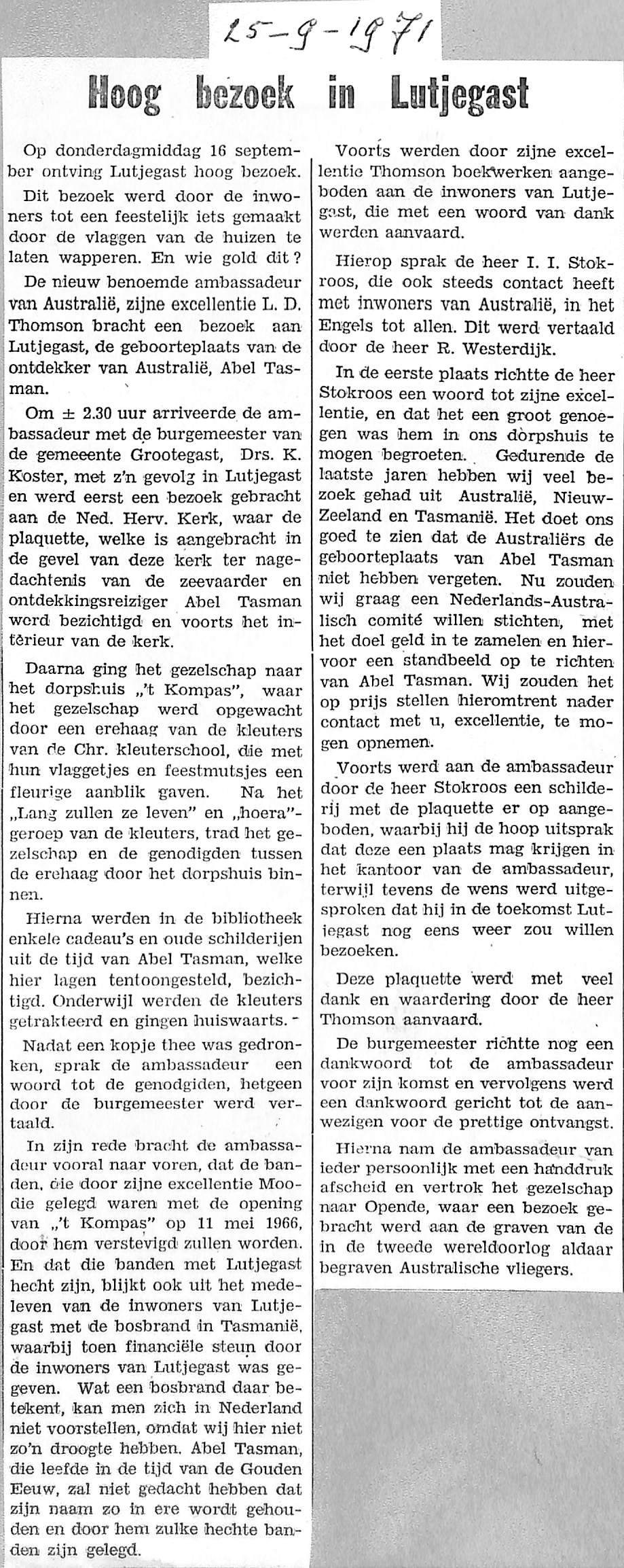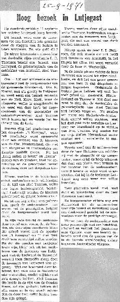 L.D. Thomson bezocht Lutjegast met burgemeester K. Koster, aanwezig de heren I.I. Stokroos en R. Westerdijk
