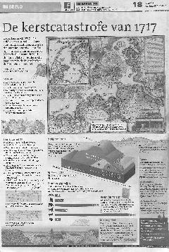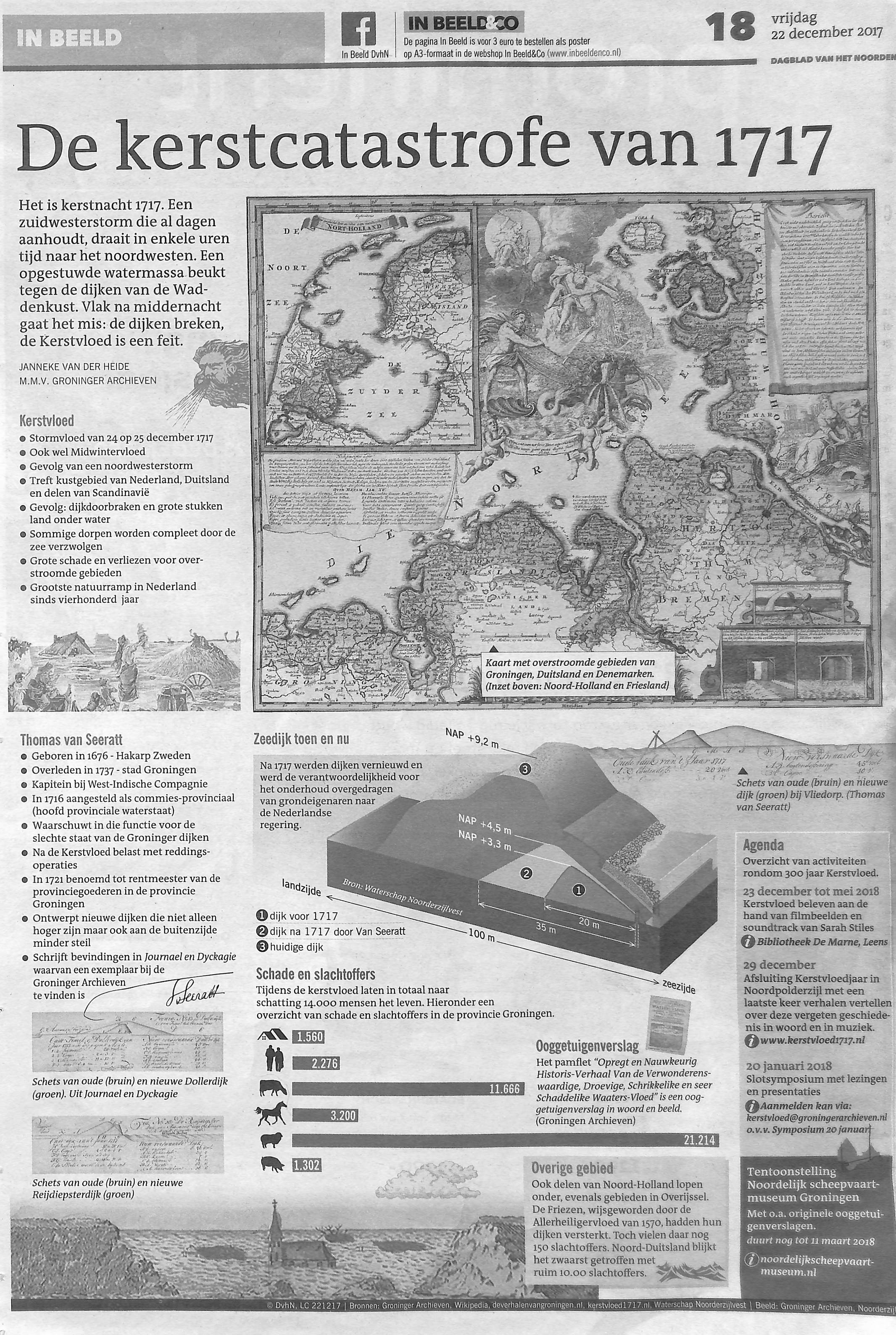 Verklaring met tekeningen van de Kerstvloed in Groningen en verder, waarbij o.a. 2276 mensen verdronken.