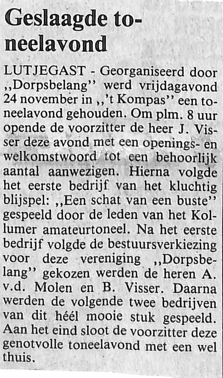 geslaagde toneelavond van het Kollumer amateurtoneel; J. Visser
