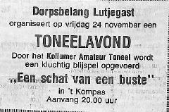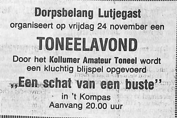 advertentie toneelstuk van het Kollumer amateurtoneel