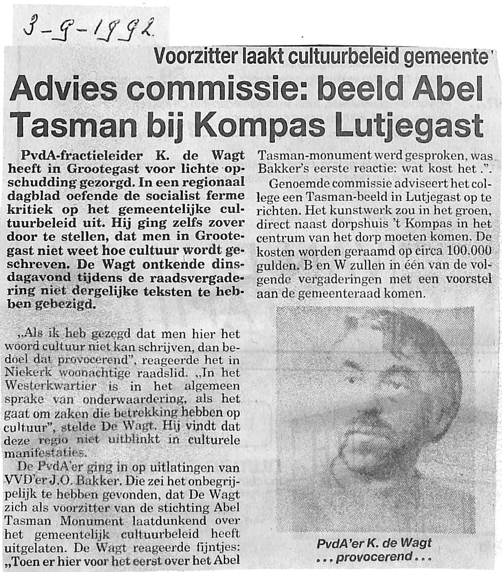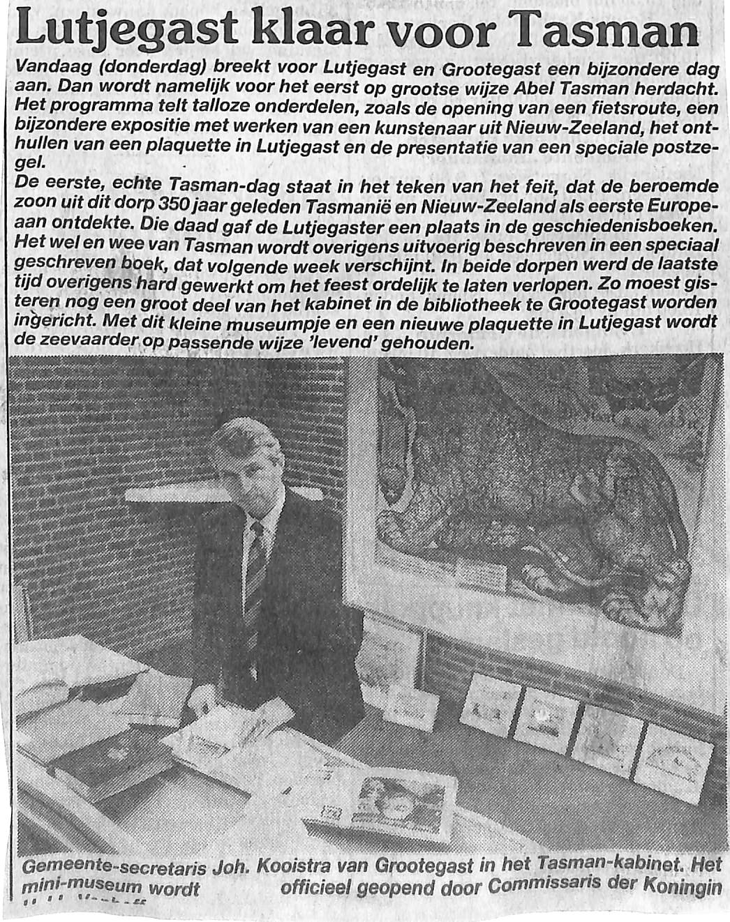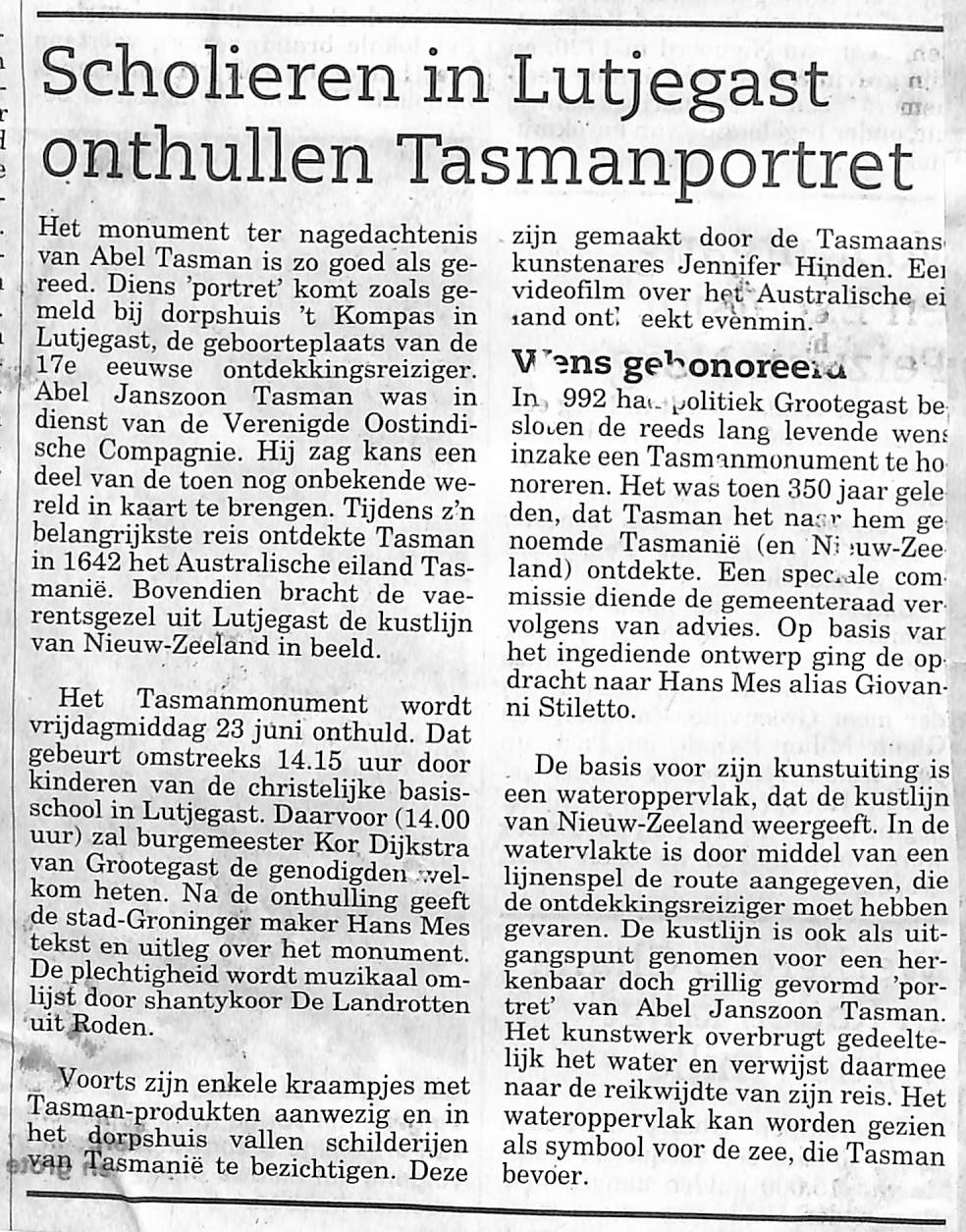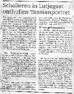 Scholieren in Lutjegast onthullen Tasmanportret; K. Dijkstra, Hans Mes, Jennifer Hinden