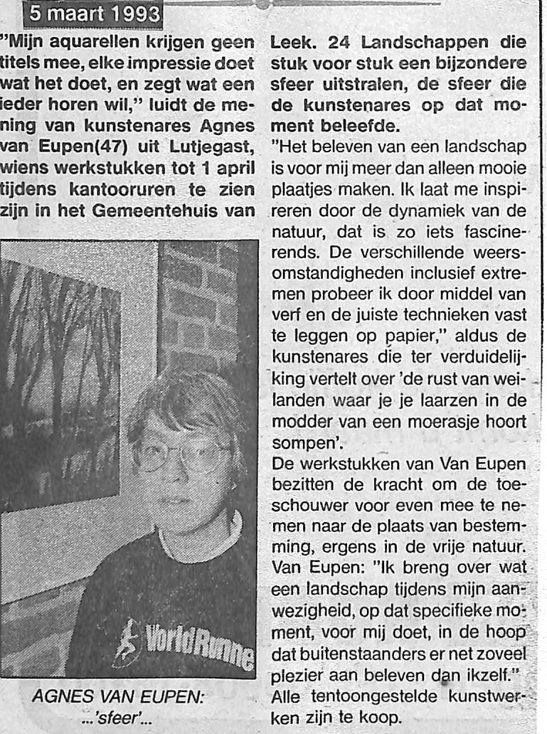 Agnes van Eupen heeft tentoonstelling in gemeentehuis van Grootegast