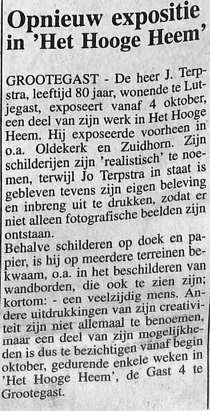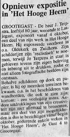 expositie in 'Het Hooge Heem' door J. Terpstra