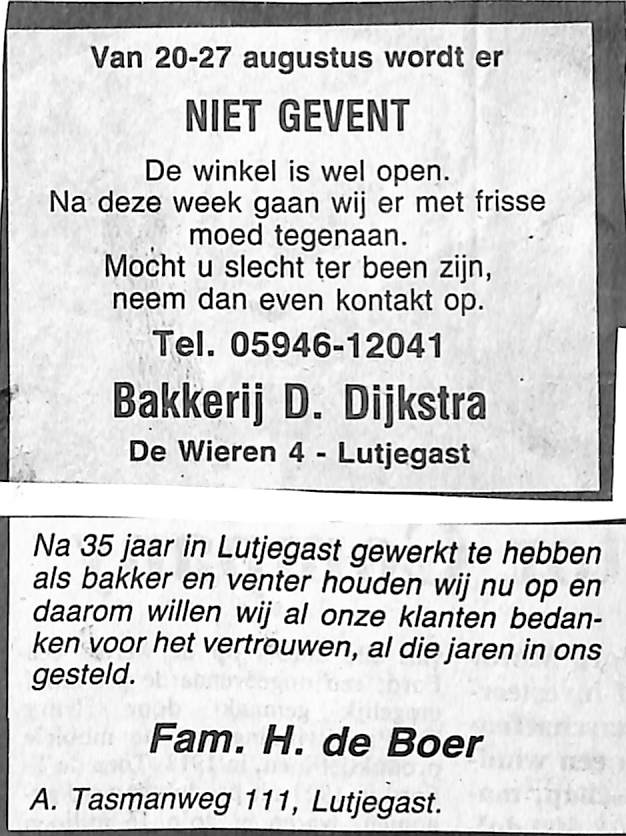 bakker H. de Boer houd er mee op en bedankt iedereen.