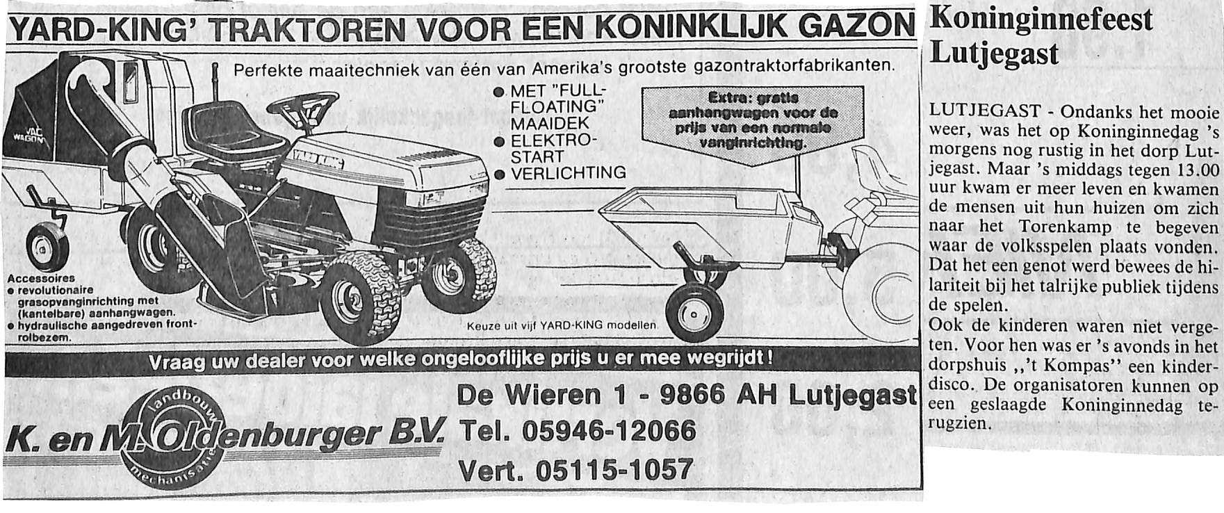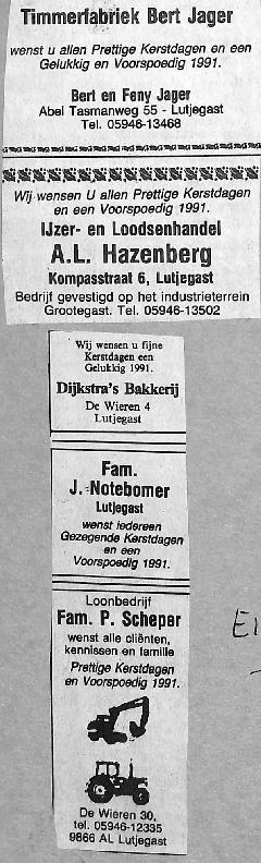 nieuwjaarswensen; K. en M. Oldenburger, Notebomer's bouwbedrijf, Firma F. Zuidema, A. J. Scheper, Velko-Therm B.V., loonbedrijf Wierda, D. v/d Bijl, H. Teeninga, firma K. G. v/d Velde &Zn, Jan en Janny Stokroos, M. en H. Meijer, R. Huistra