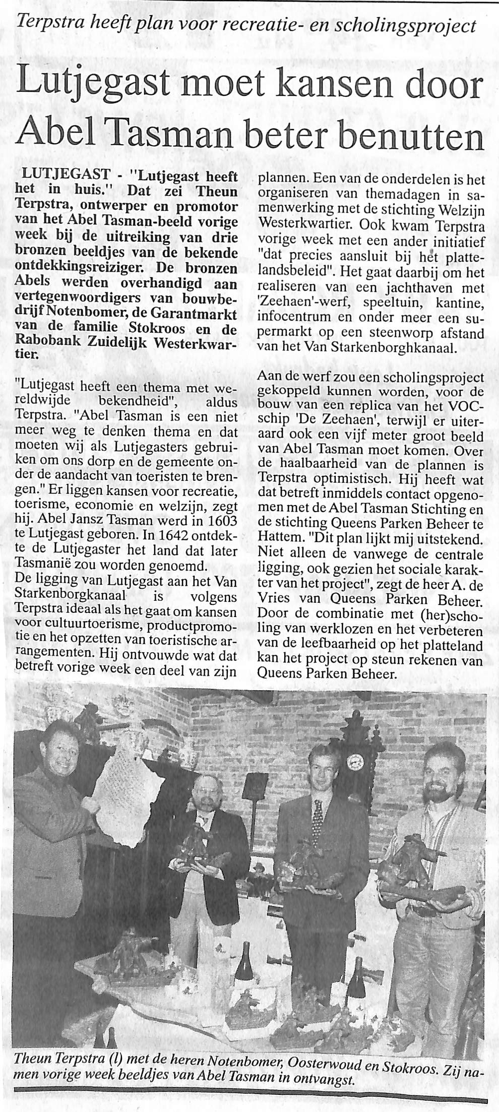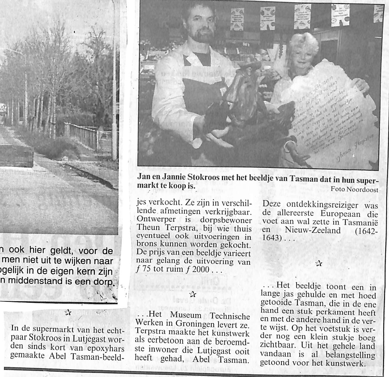 Bij Jan Stokroos is beeld te koop van Abel Tasman, ontworpen door Theun Terpstra in verschillernde maten epoxyhars. of in Brons.