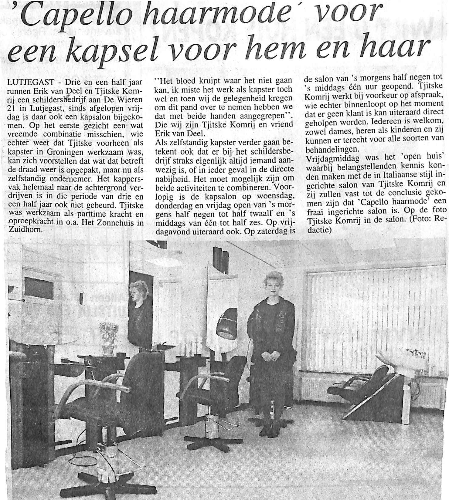 Opening van kapsalon Capello, Tjitske Komrij, Erik van Deel.