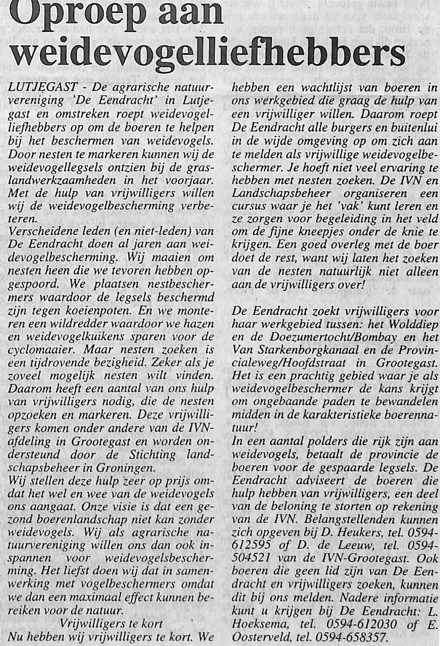 R. H. Veenstra, De Wieren 44B en J. Holtrop De Wieren 46 voor rooien van berken en elzen.
