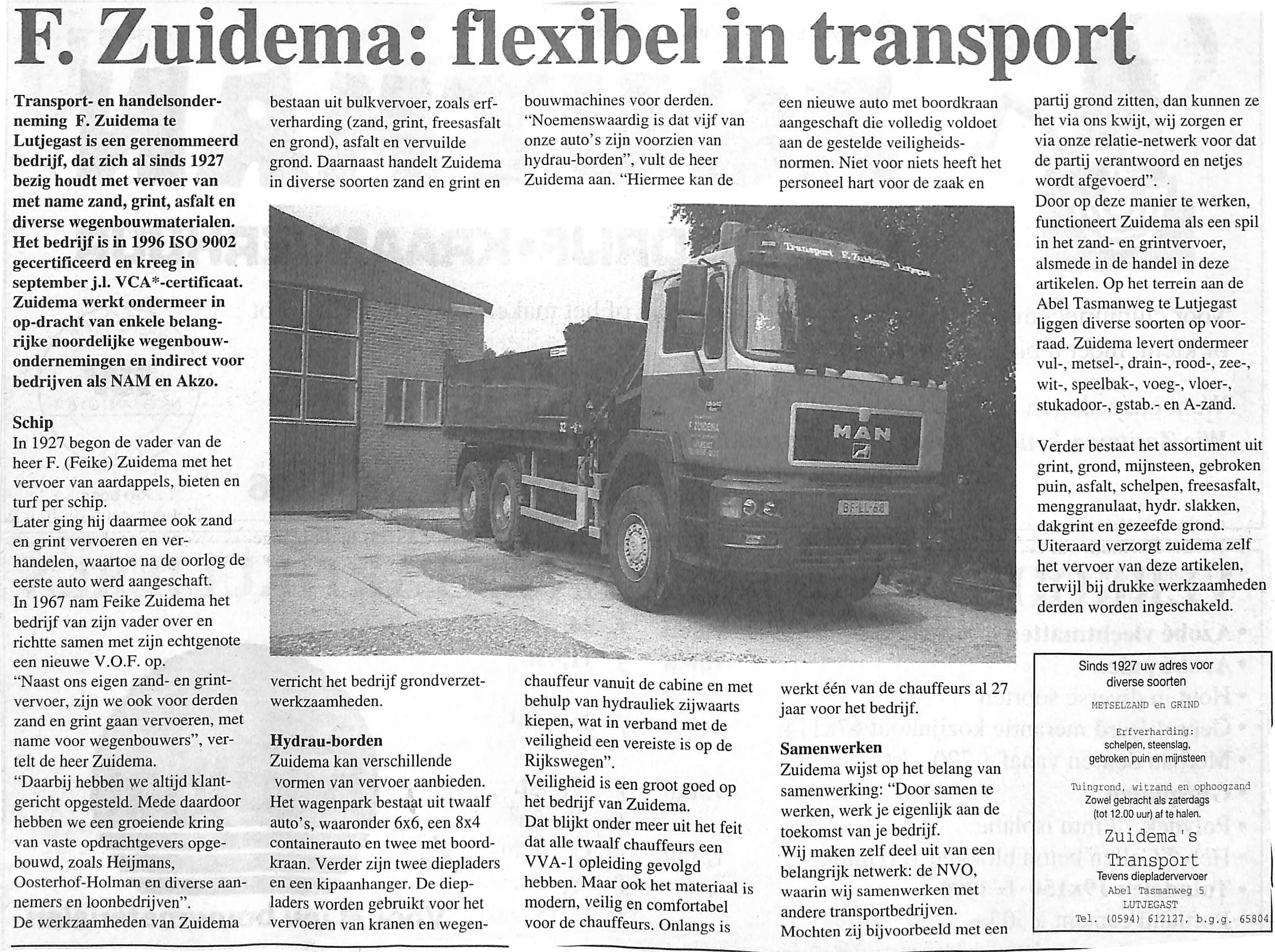 Uitgebreid verslag over Zuidema 's zand en grindhandel.