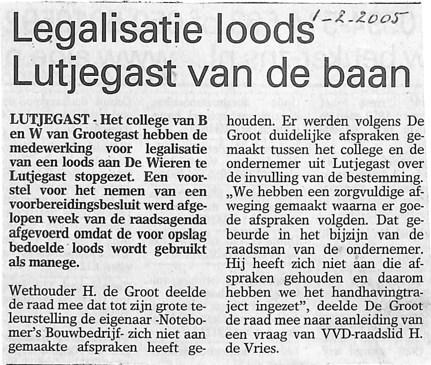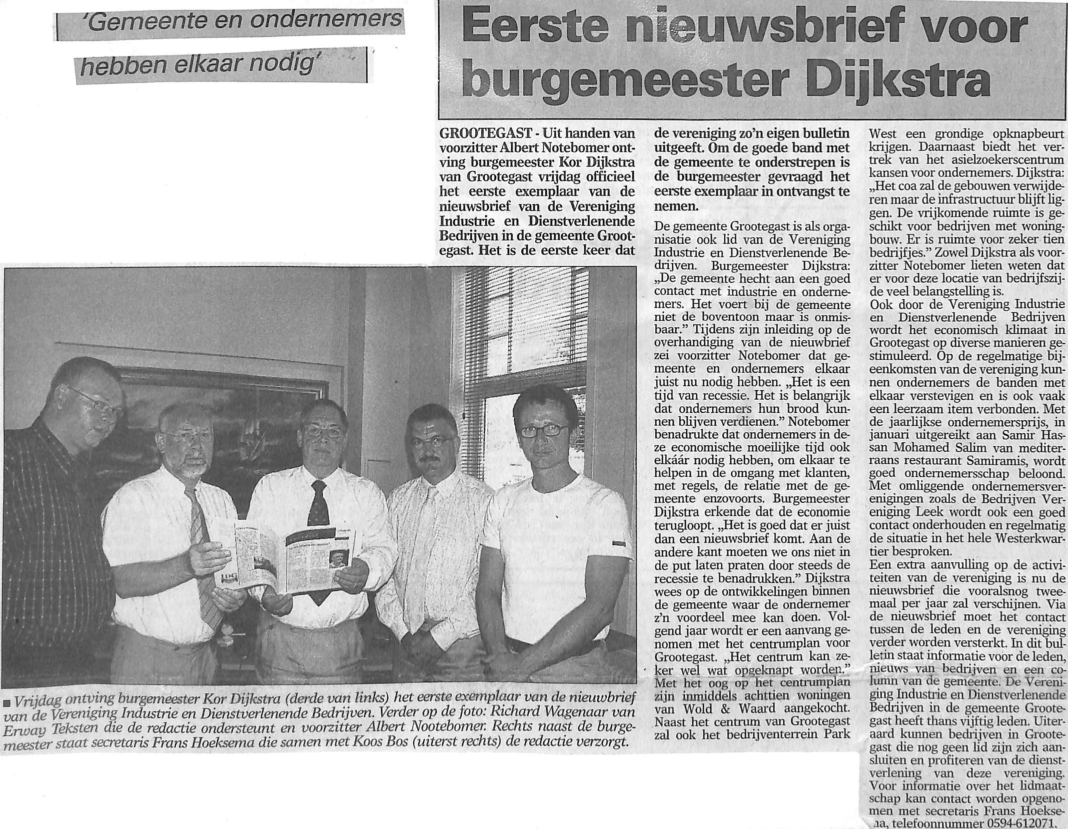 De vereniging van bedrijven in gemeente Grootegast, schrijven een nieuwdsbrief over de stand van zaken.
