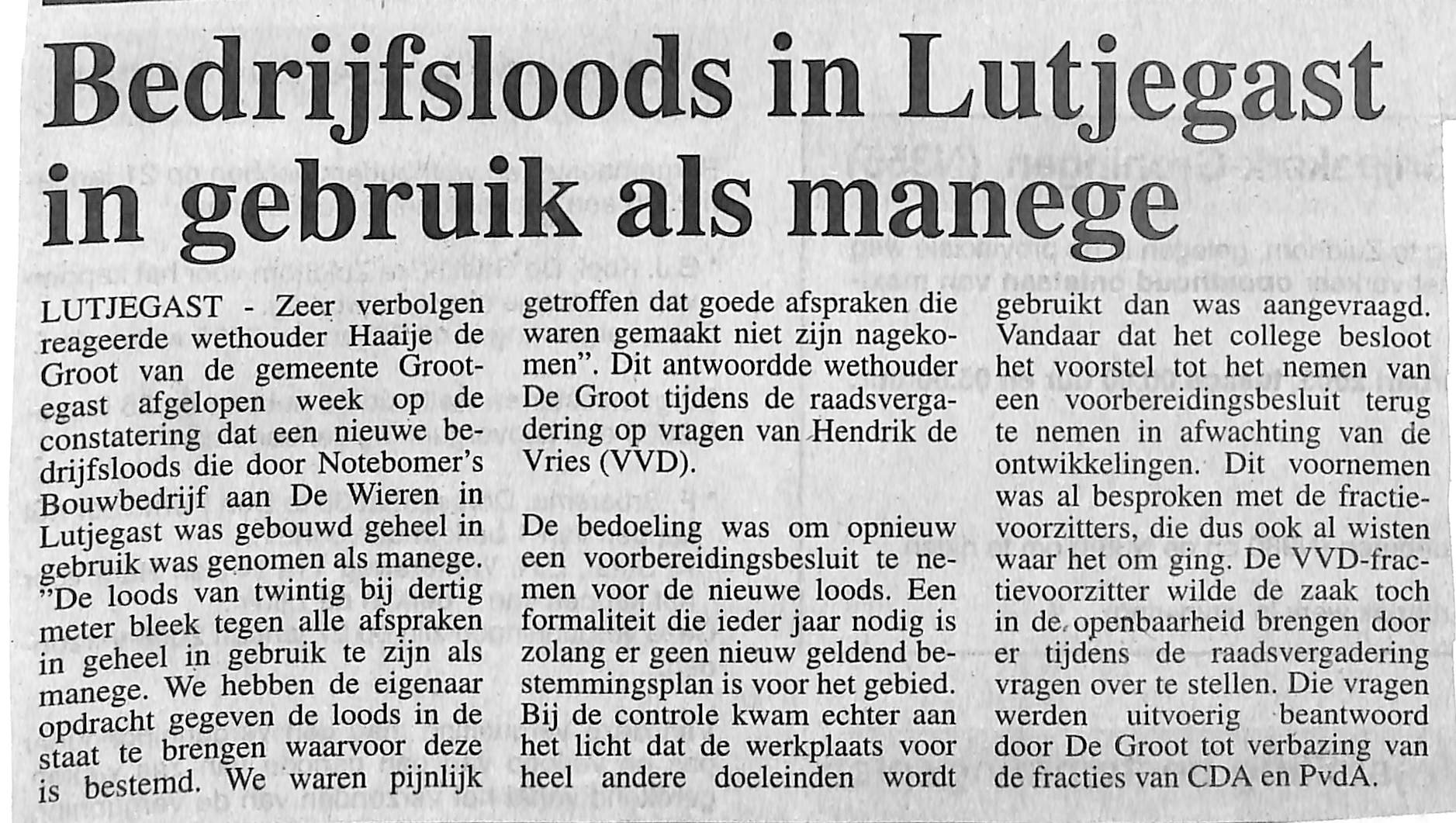 Notebomer bouwde een loods voor materiaal en het werd een manege.