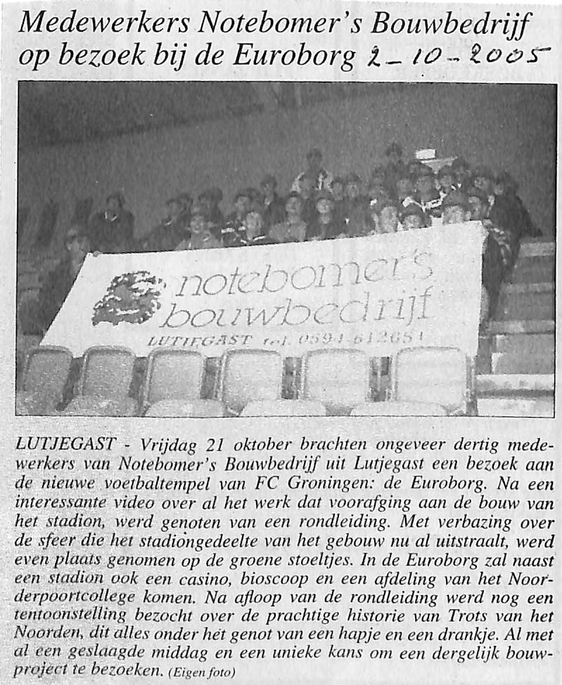 Notebomers bouwbedrijf met personeel op bezoek bij de Euroborg