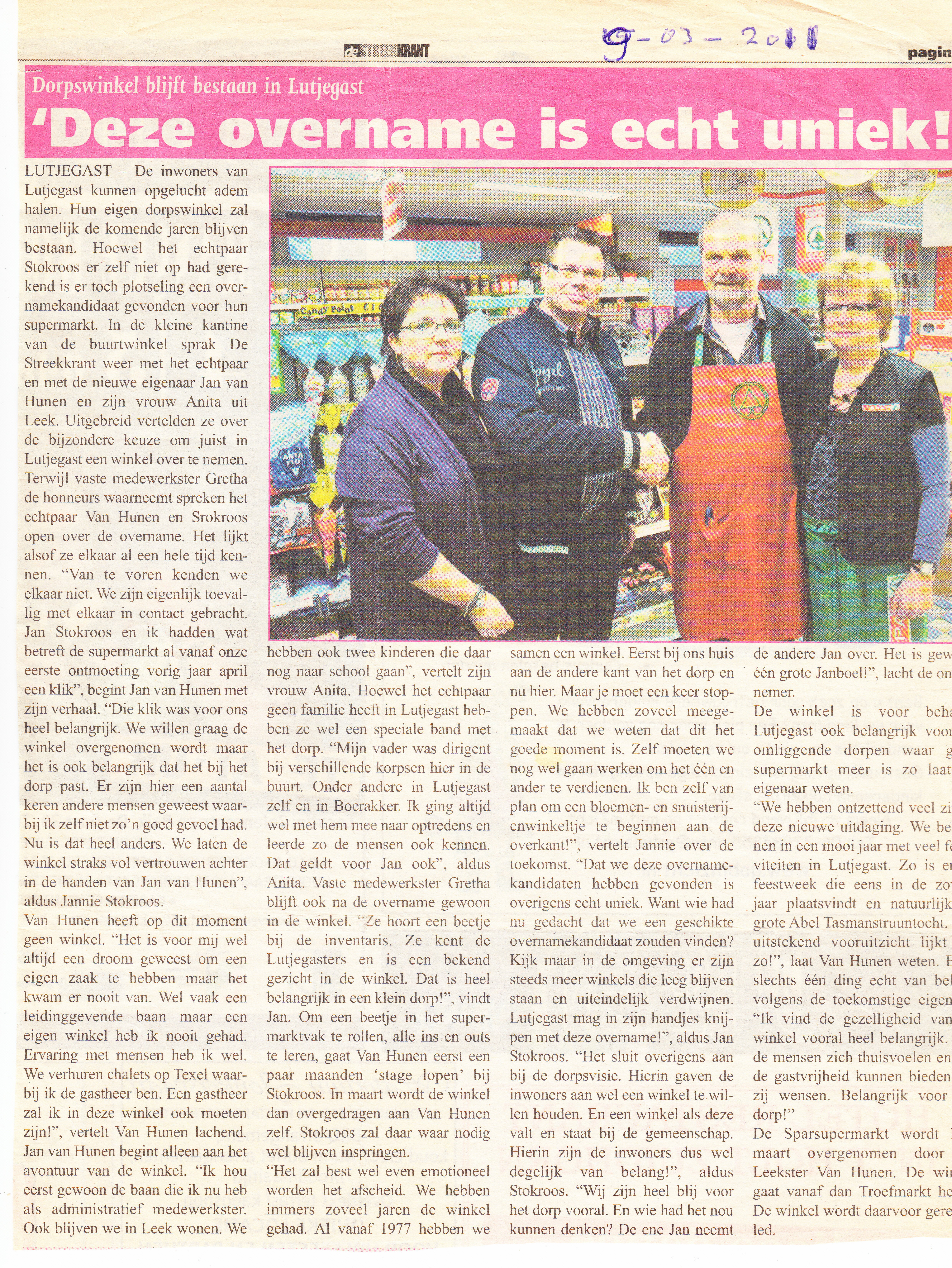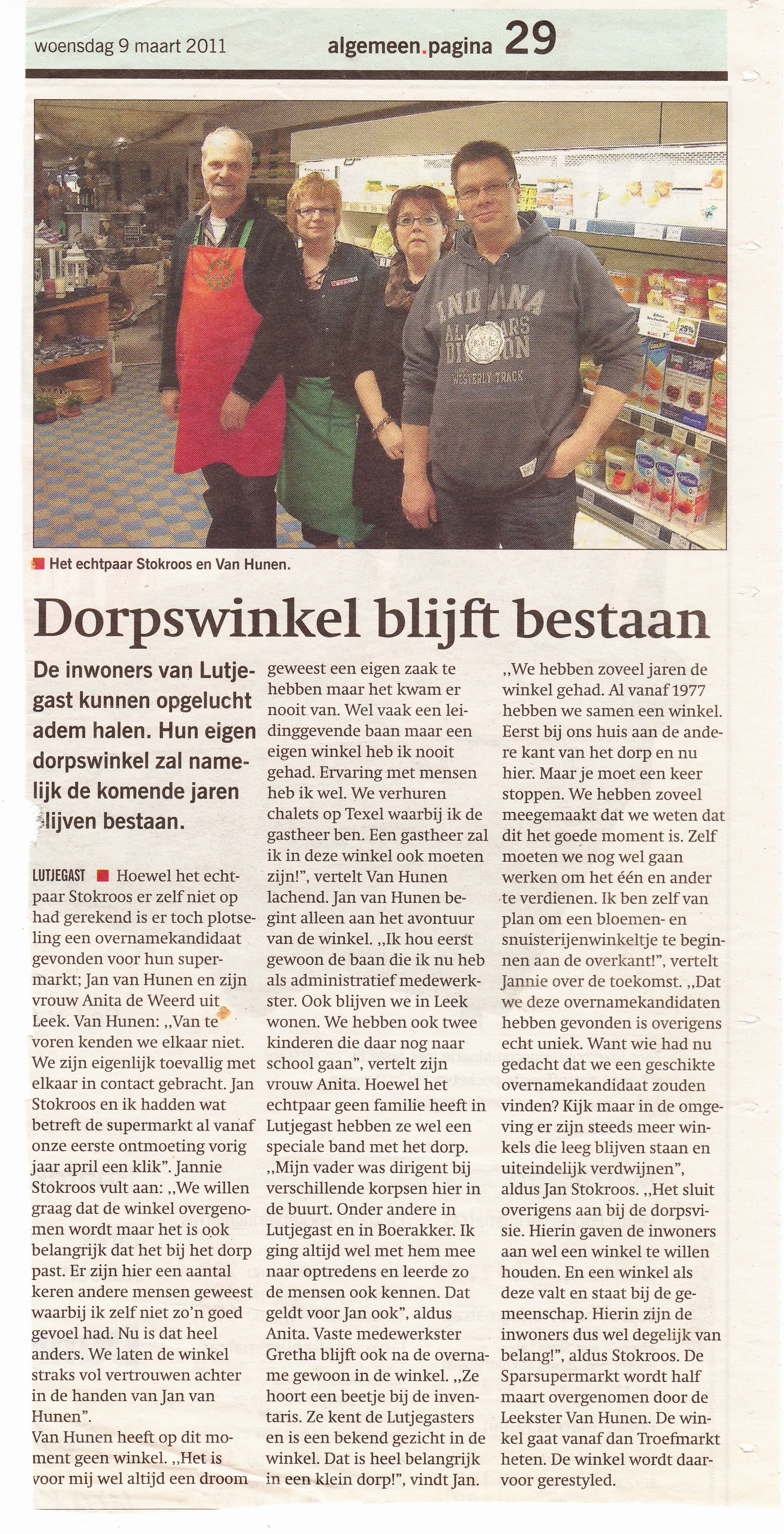dorpswinkel blijft bestaan, Jan van Unen en Anita de Weerd nemen de winkel over van Jan en Jannie Stokroos