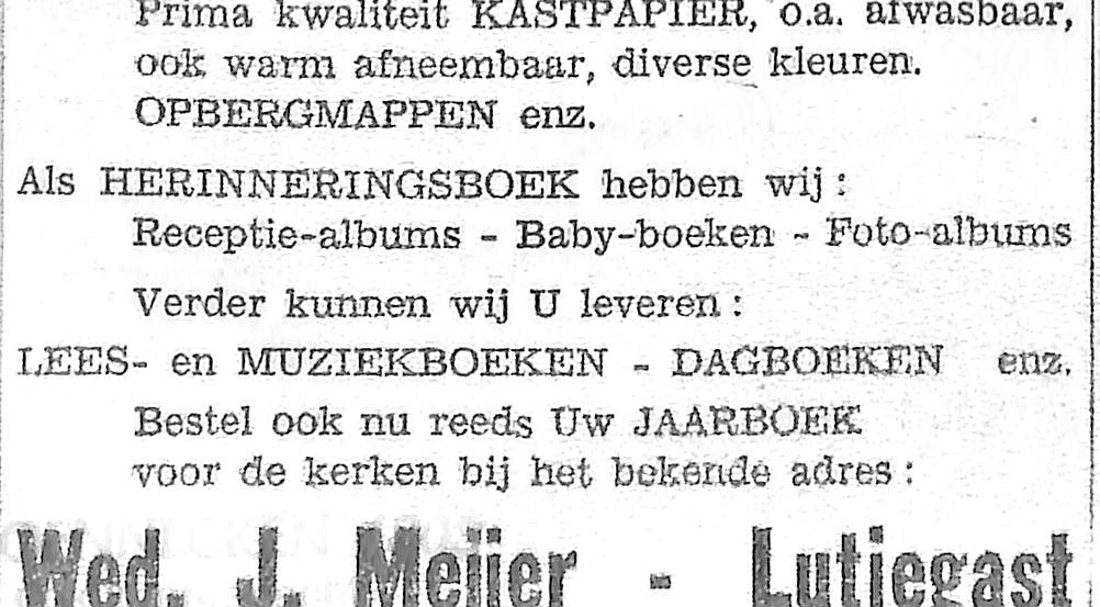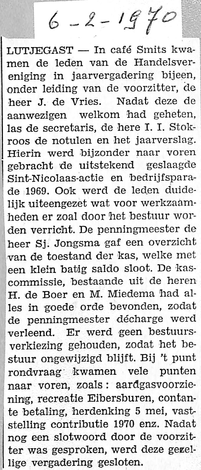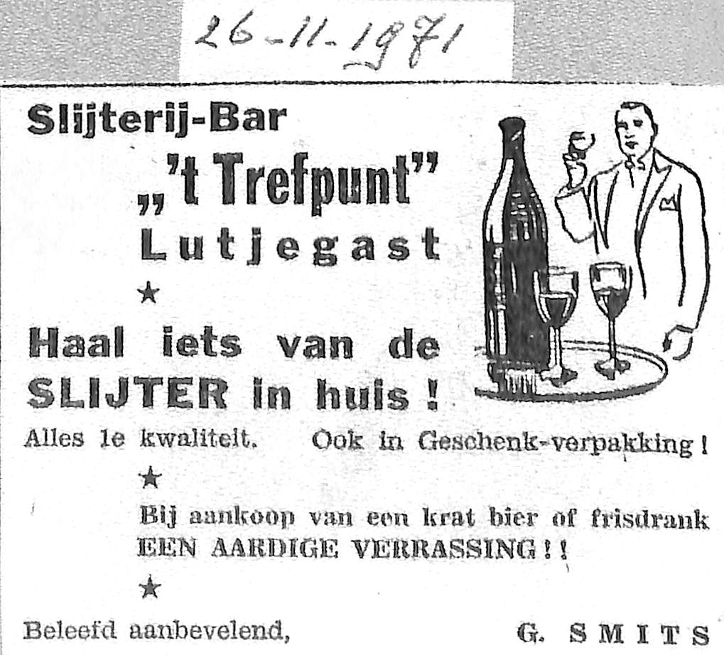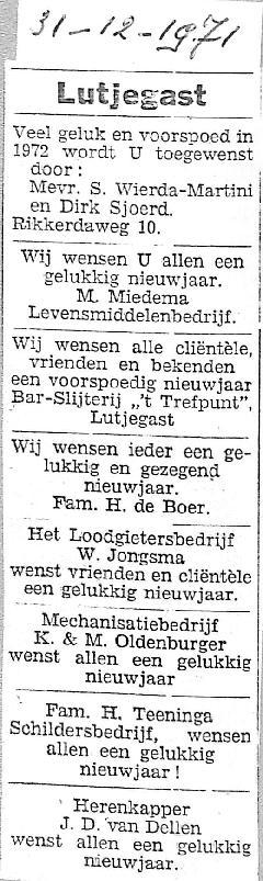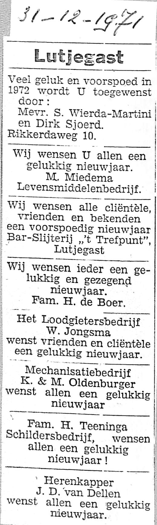 S. Wierda-Martini en Dirk Sjoerd, M. Miedema, slijterij 't Trefpunt, H. de Boer, W. Jongsma, K. e3n M. Oldenburger, H. Teeninga, J.D. van Dellen.