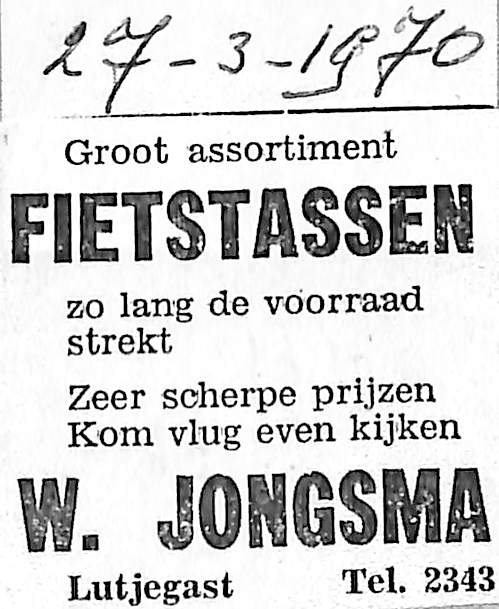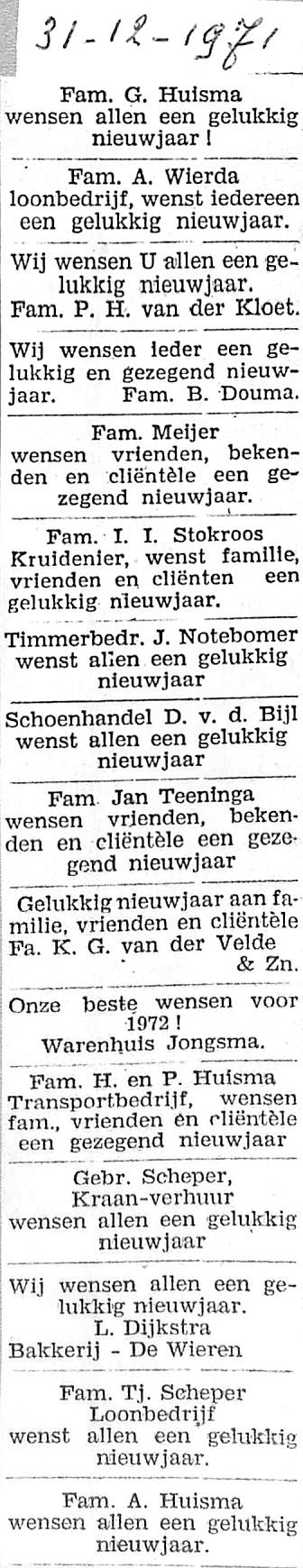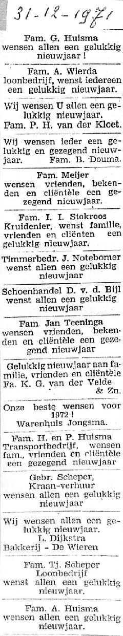 G. Huisma, A. Wierda, P. A. van der Kloet, Meijer, I.I. Stokroos, J. Notebomer, D. v.d. Bijl, Jan Teeninga, K. G. v.d. Velde, Warenhuis Jongsma, H. en P. Huisma, Gebr. Scheper, L. Dijkstgra, Tj . Scheper, A. Huisma.