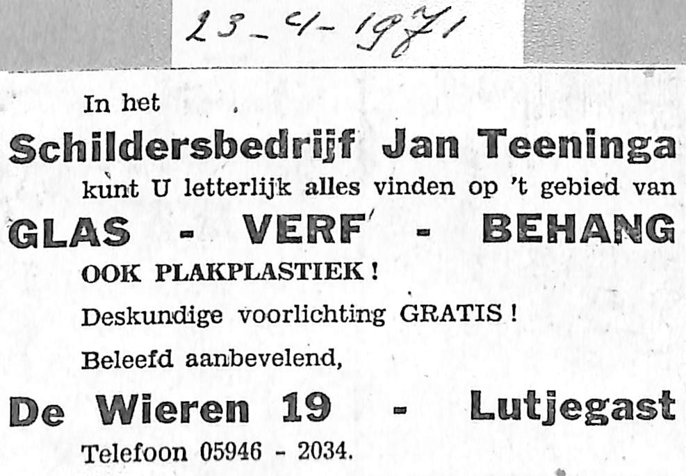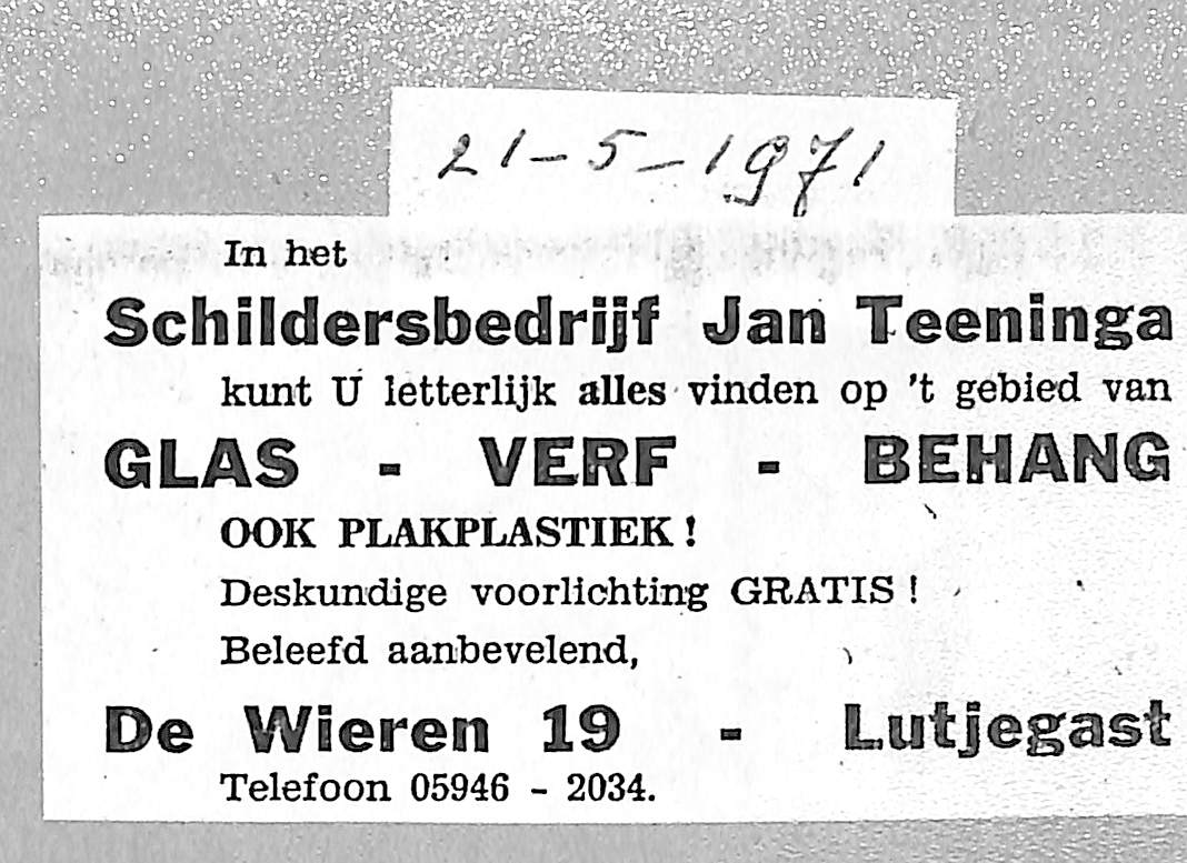 Schildersbedrijf Jan Teeninga, De Wieren 19