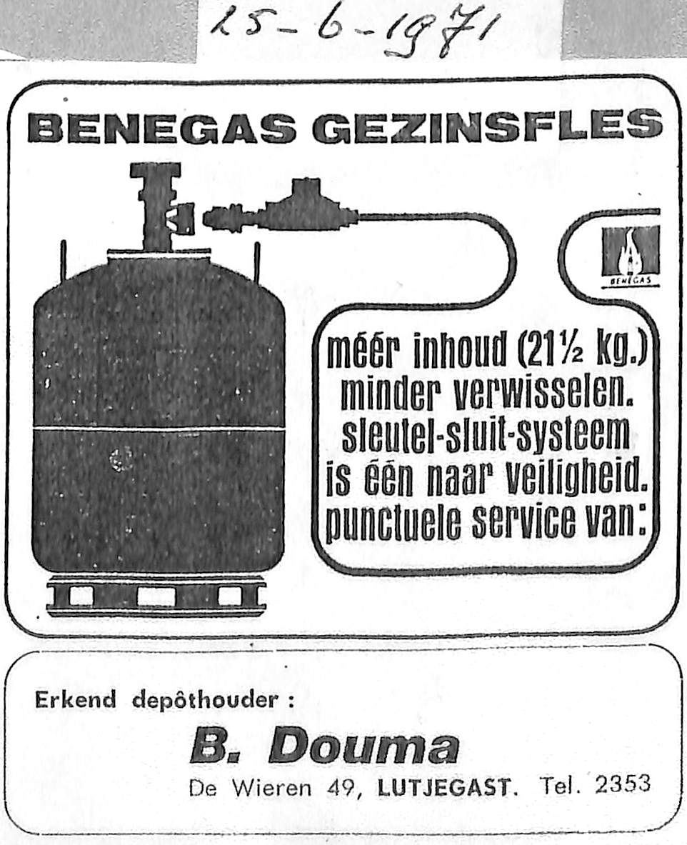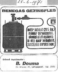 Benegas gezinsfles. Depothouder B. Douma, De Wieren 49