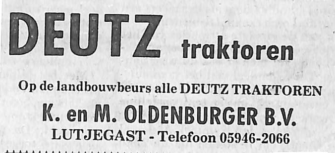 Op de landbouwbeurs alle Deutz trekkers; K. en M. Oldenburger B.V