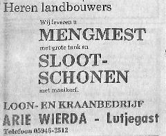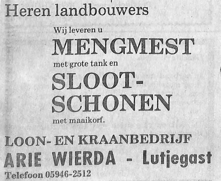 advertentie van Loon- en kraanbedrijf Arie Wierda