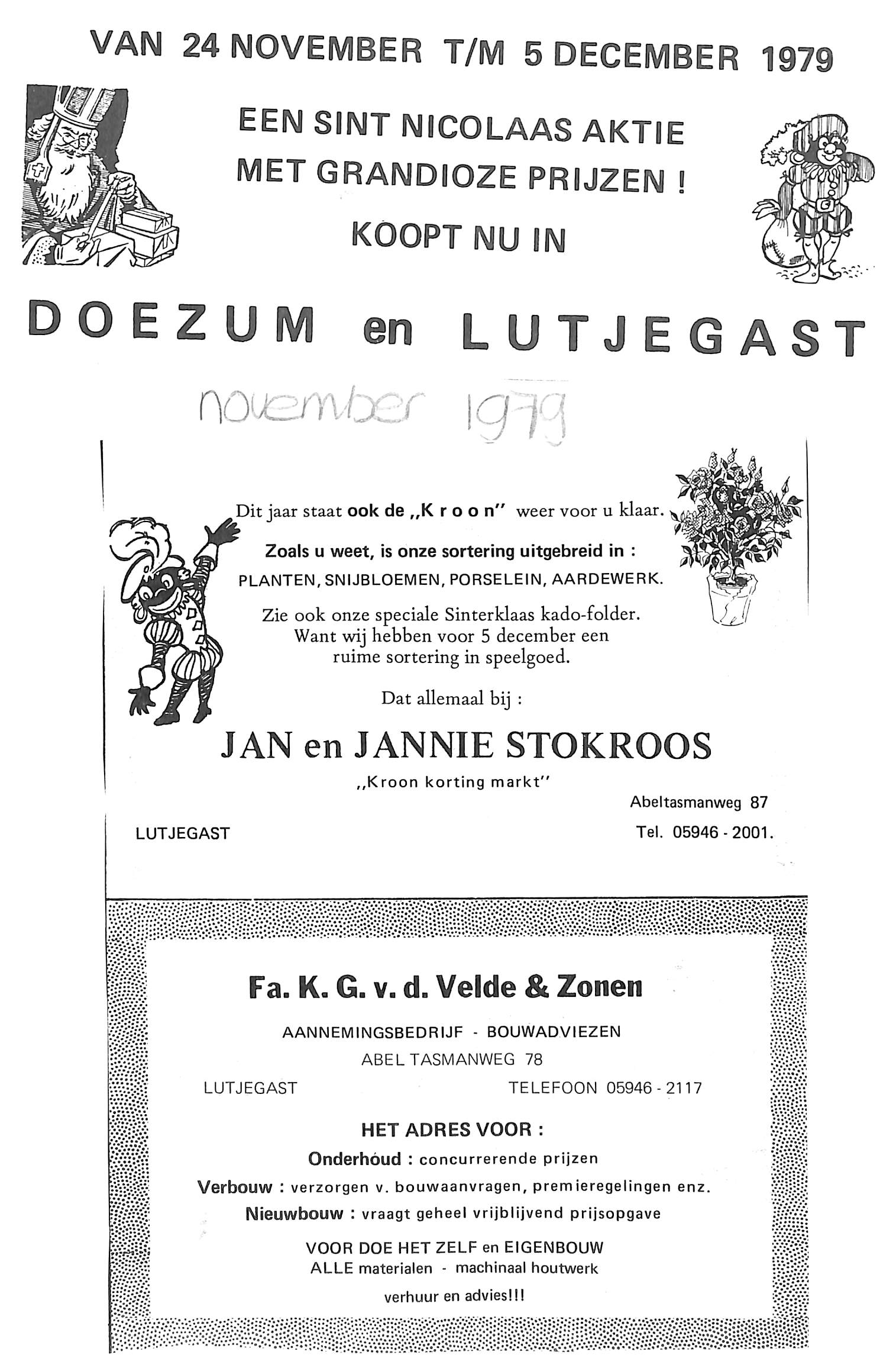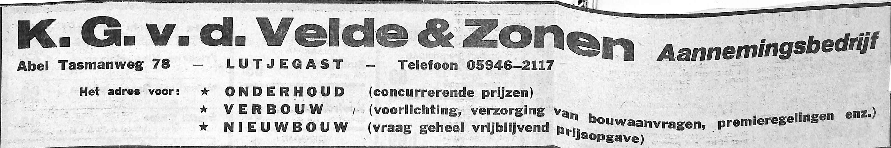 advertentie van K. G. v/d Velde & Zonen Aannemingsbedrijf