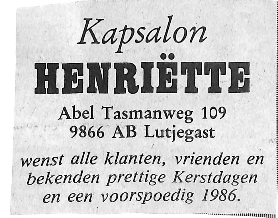 kapsalon Henriëtte wenst iedereen een fijne kerst
