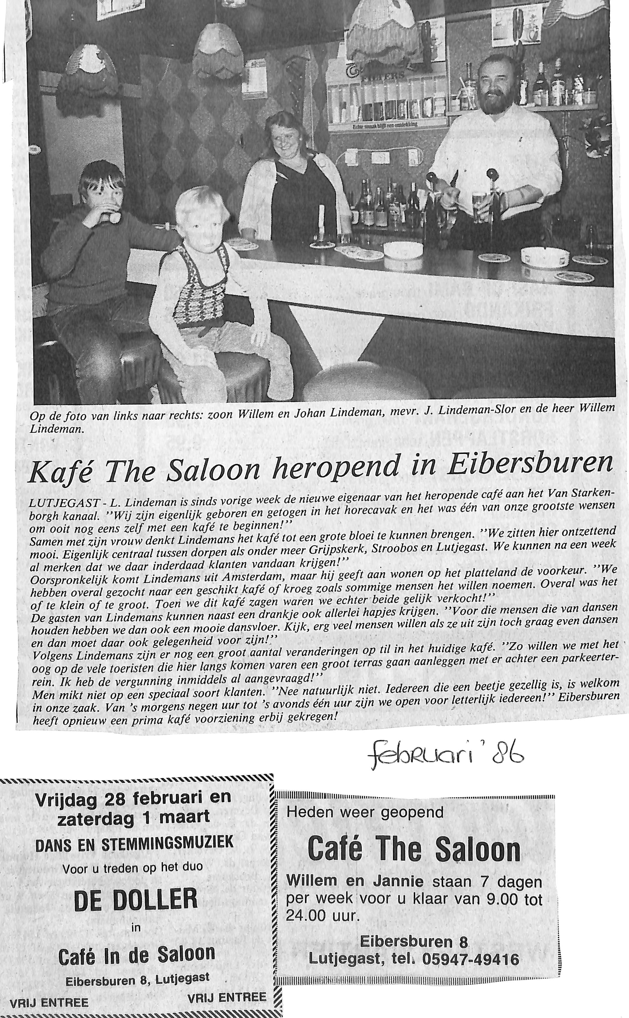 Café The Saloon heropend in Eibersburen; L. Lindeman,