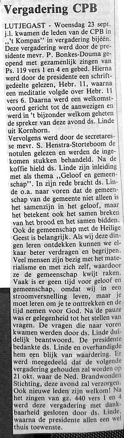 vergadering CPB; P. Ponkes-Douma, Schuur