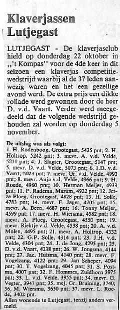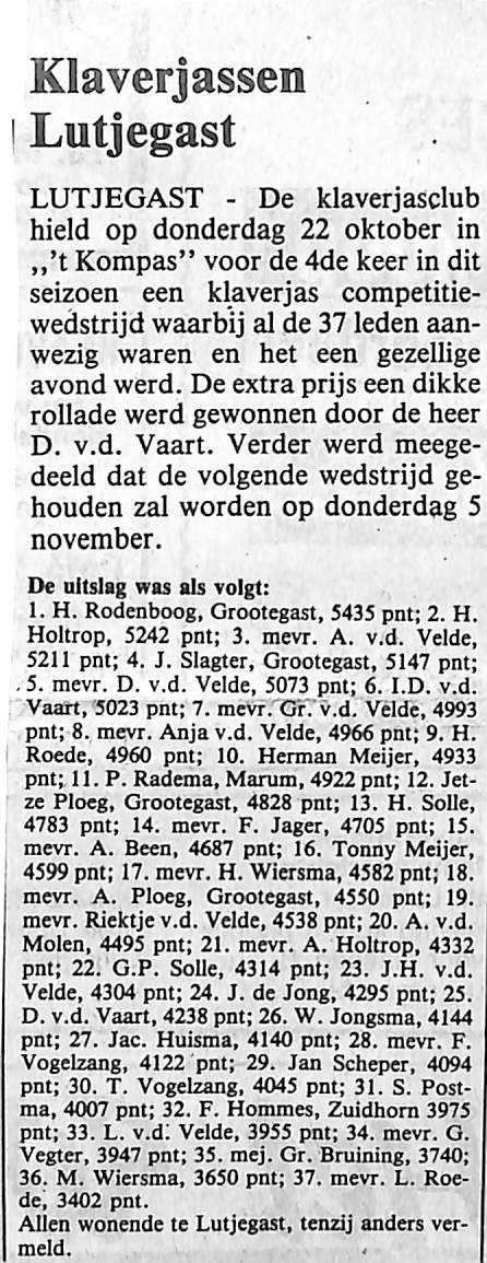 Rodenboog, Holtrop, v.d. Velde, Slagter, D. v.d. Vaart, Roede, Meijer, Radema, Ploeg, Solle, Jager, Been, Wiersma, v.d. Molen, Holtrop, Jongsma, de Jong, Huisma, Vogelzang, Scheper, Postma, Vegter, Hommes, Bruining,