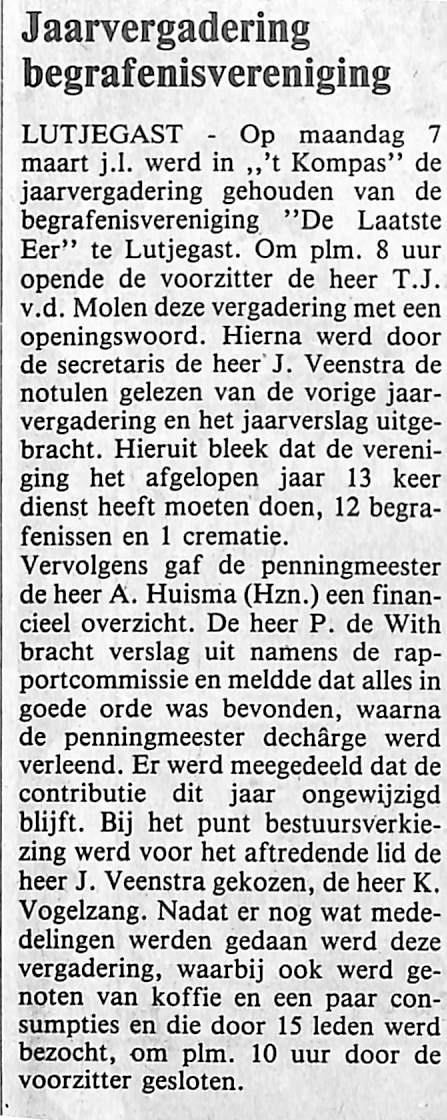 Veenstra, Hoekstra, Postma, Hijstma, vd Velde, vd Vaart, Klaassens, Steursma, Zwama, Wijbenga, de Boer,