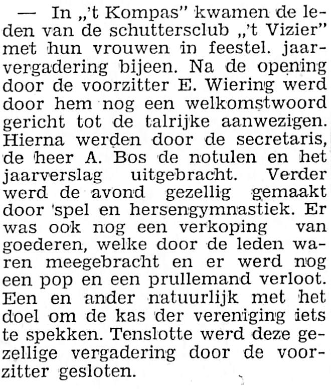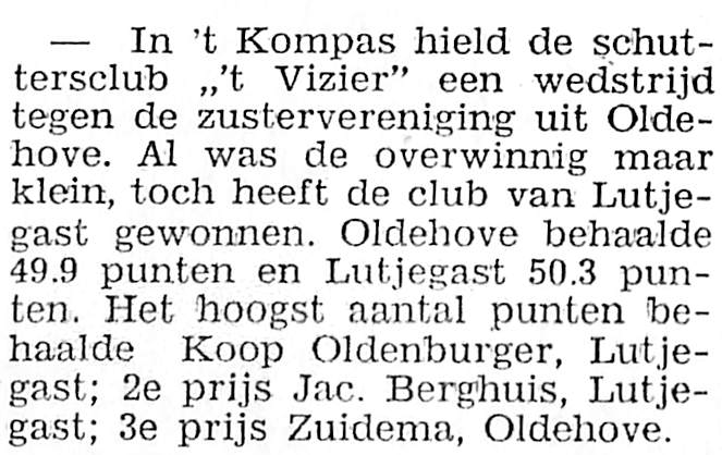 Koop Oldenburger en Jac. Berghuis worden 1e en 2e op wedstrijd Schietvereniging 't Vizier