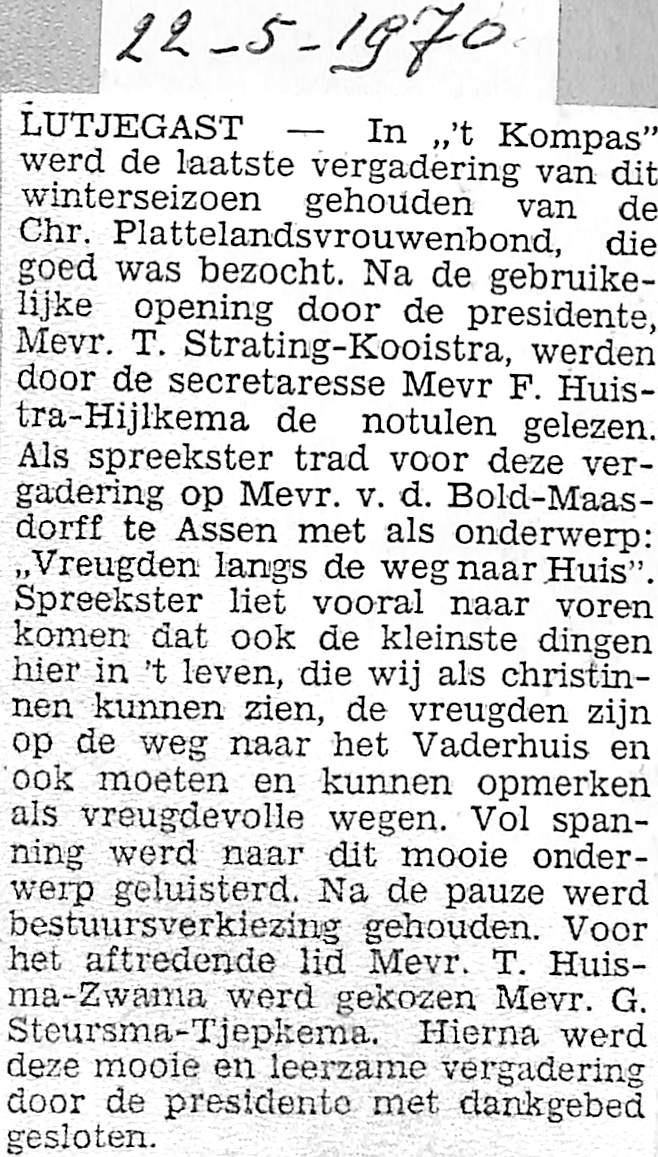 mevr. T. Strating-Kooistra, mevr. F. Huistra-Hijlkema