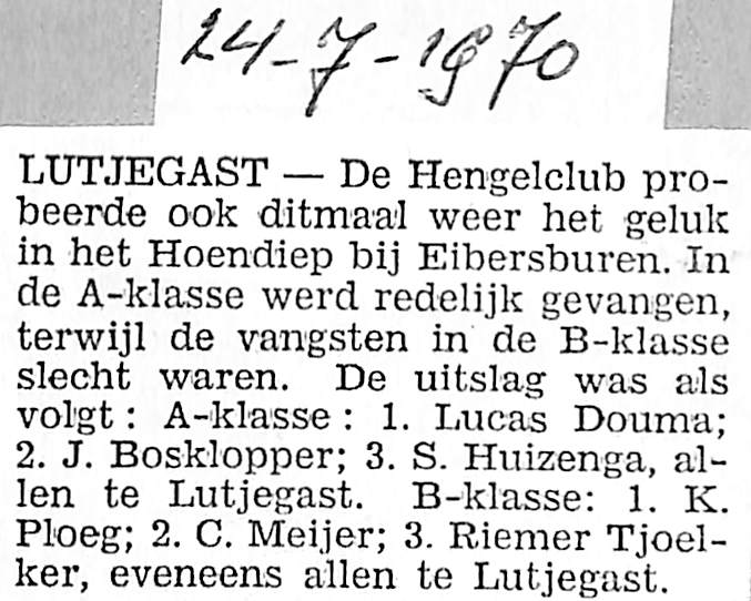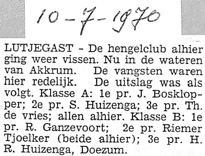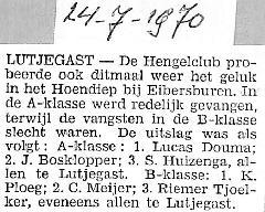 B-klasse: 1. dhr R. Ganzevoort, 2. Riemer Tjoelker, 3, H.R. Huizenga, Doezum