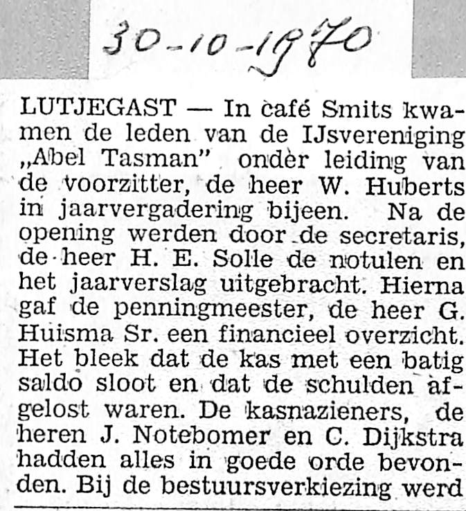 dhr W. Huberts, dhr H.E. Solle, dhr G. Huisma sr, dhr J. Notebomer, dhr C. (of K.) Dijkstra